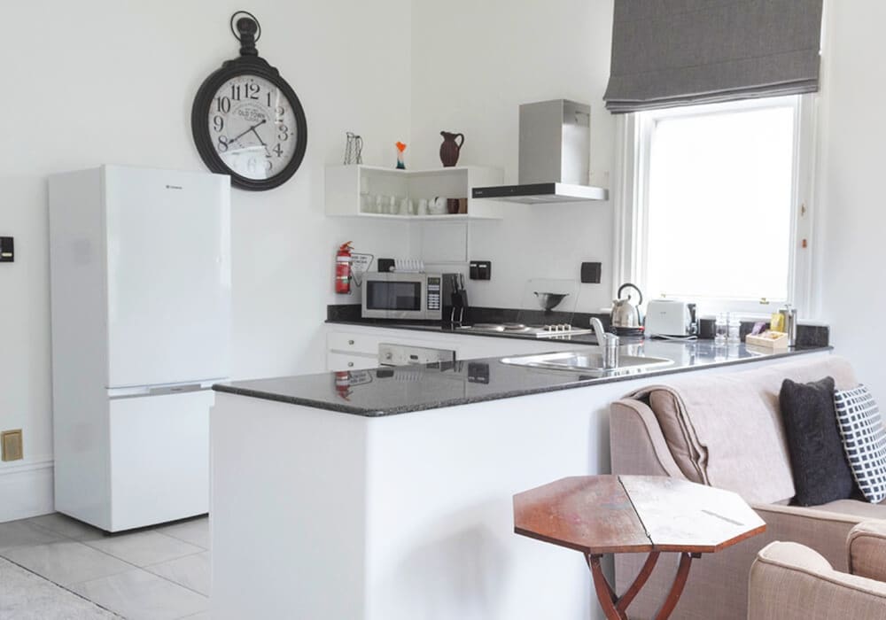 Really well positioned. Reception staff very friendly and helpful. Many unexpected ‘treats’ e.g. fresh coffe, lovely toiletries, hairdryer, WiFi etc. Apartment very roomy and comfortable.