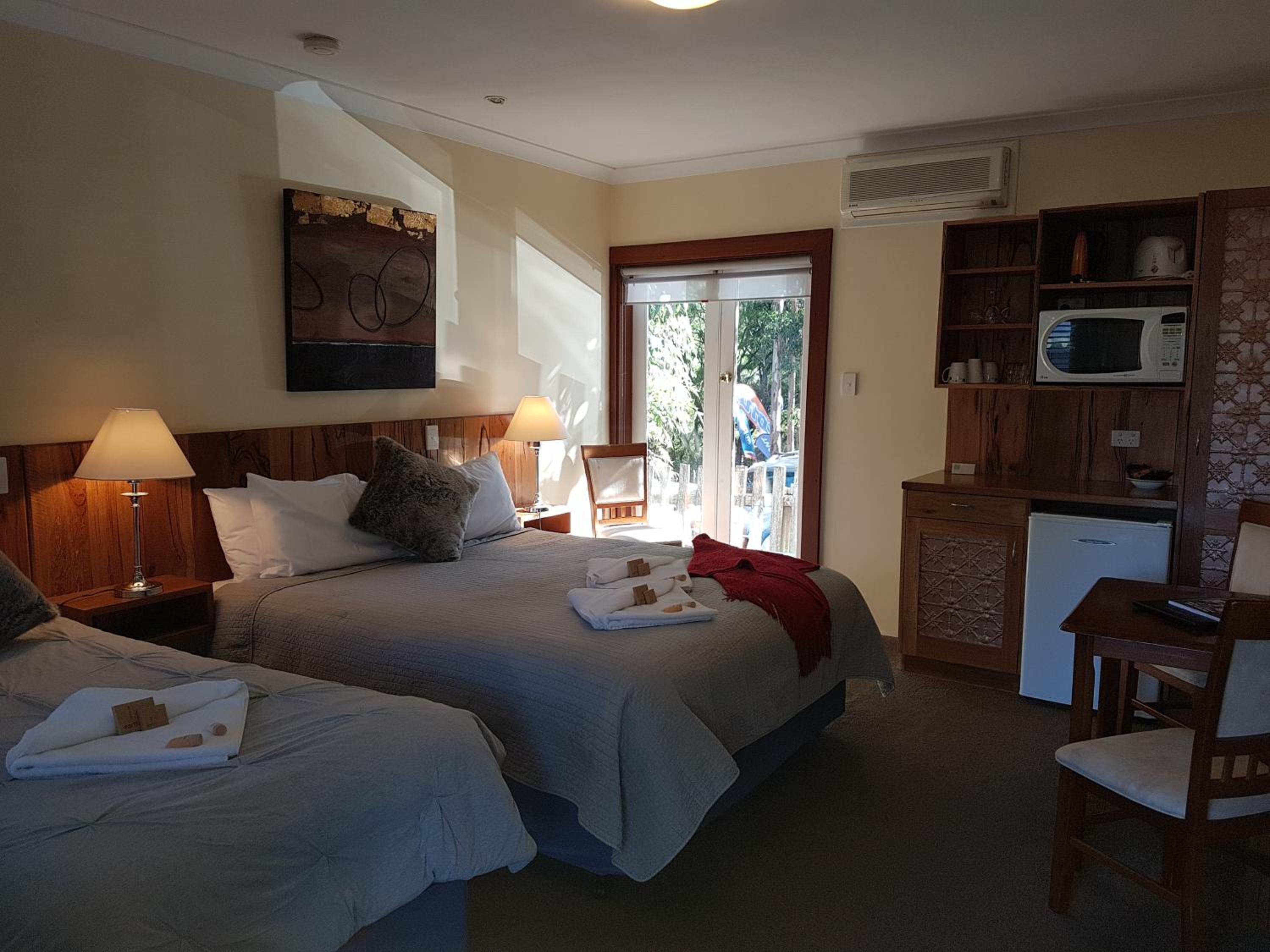 It was within easy walk of excellent restaurant and a cafe/bakery, art galleries, mountain bike hire, museum and shops in town. Also close to riverside walk or bike ride. Lovely Swiss style cabin accommodation