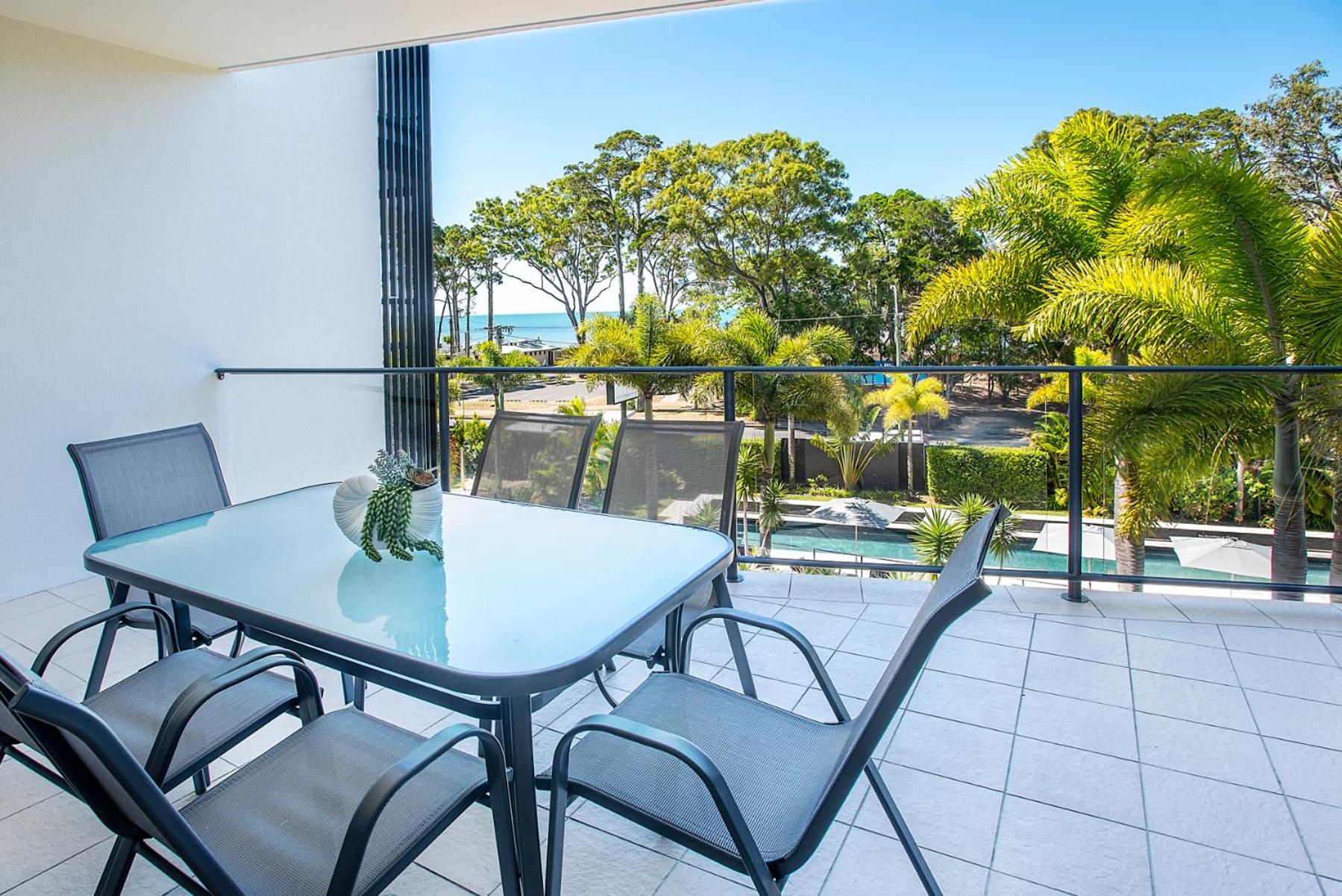 Directly across the road from Scarness Beach, The Bay Apartments offer a luxurious stay with a tennis court, a heated outdoor pool, children's wading pool, and a heated outdoor spa pool. Set in tropical gardens, all apartments boast private balconies with ocean or pool views.