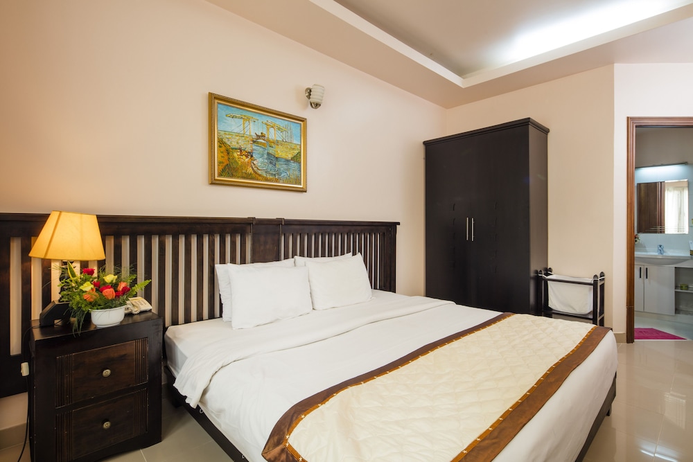 7군 푸미흥 초입에 위치해있어 위치는 좋습니다 비엔동호텔과 서비스아파트형식으로 총6곳이 운영된다고 하네요 위치는 다 그 근처구요 조식은 직접 본관에 가서 드셔야합니다. 가성비는 최고!