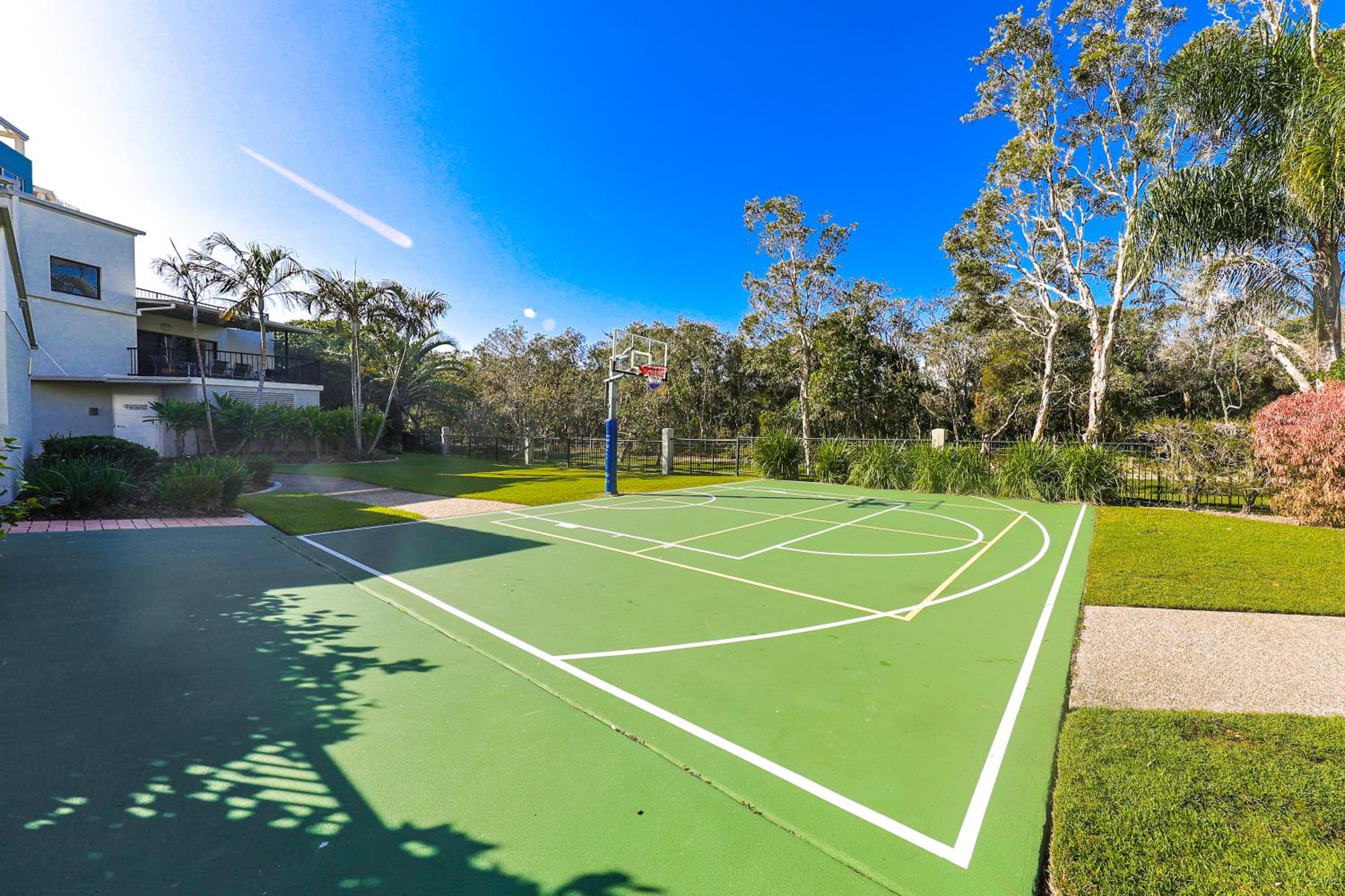 The amenities are impressive, featuring a sauna, a pool, a jacuzzi, a tennis court, and a half-size basketball court that my son and husband thoroughly enjoyed and we enjoyed a barbecue one night, which was a nice addition to our stay