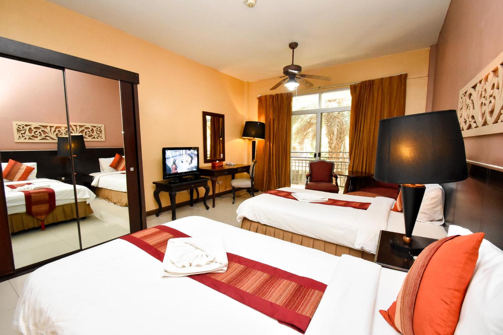 Each room at the hotel features a desk, TV, air conditioning, and a fridge. Some rooms also come with a balcony where guests can relax and enjoy the view.
