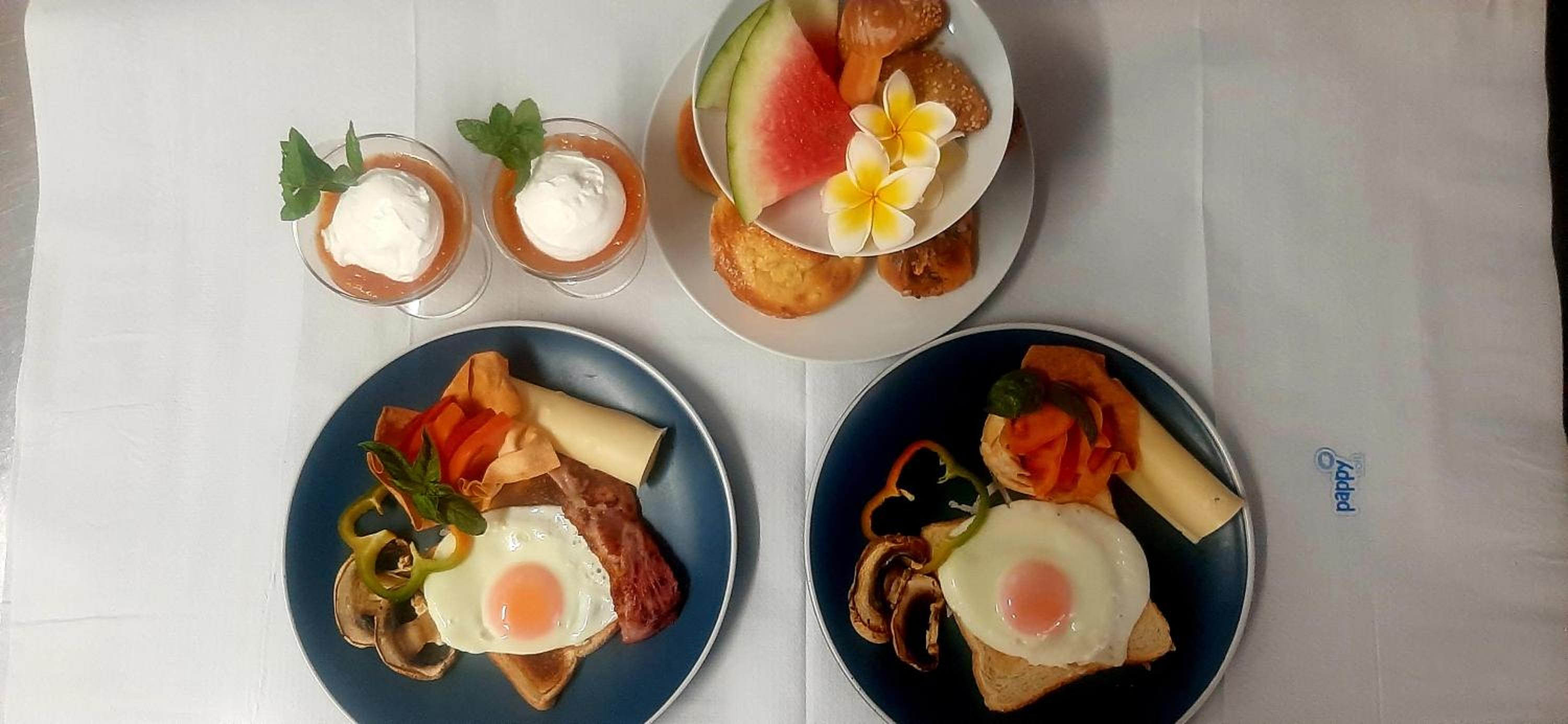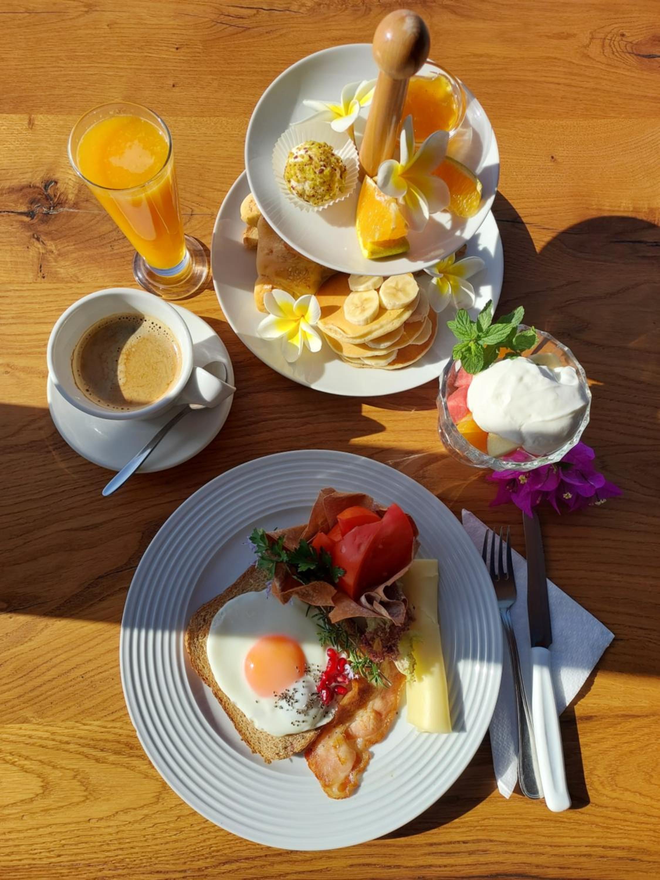 Deilig frokost,Meget pent og smakfullt servert.