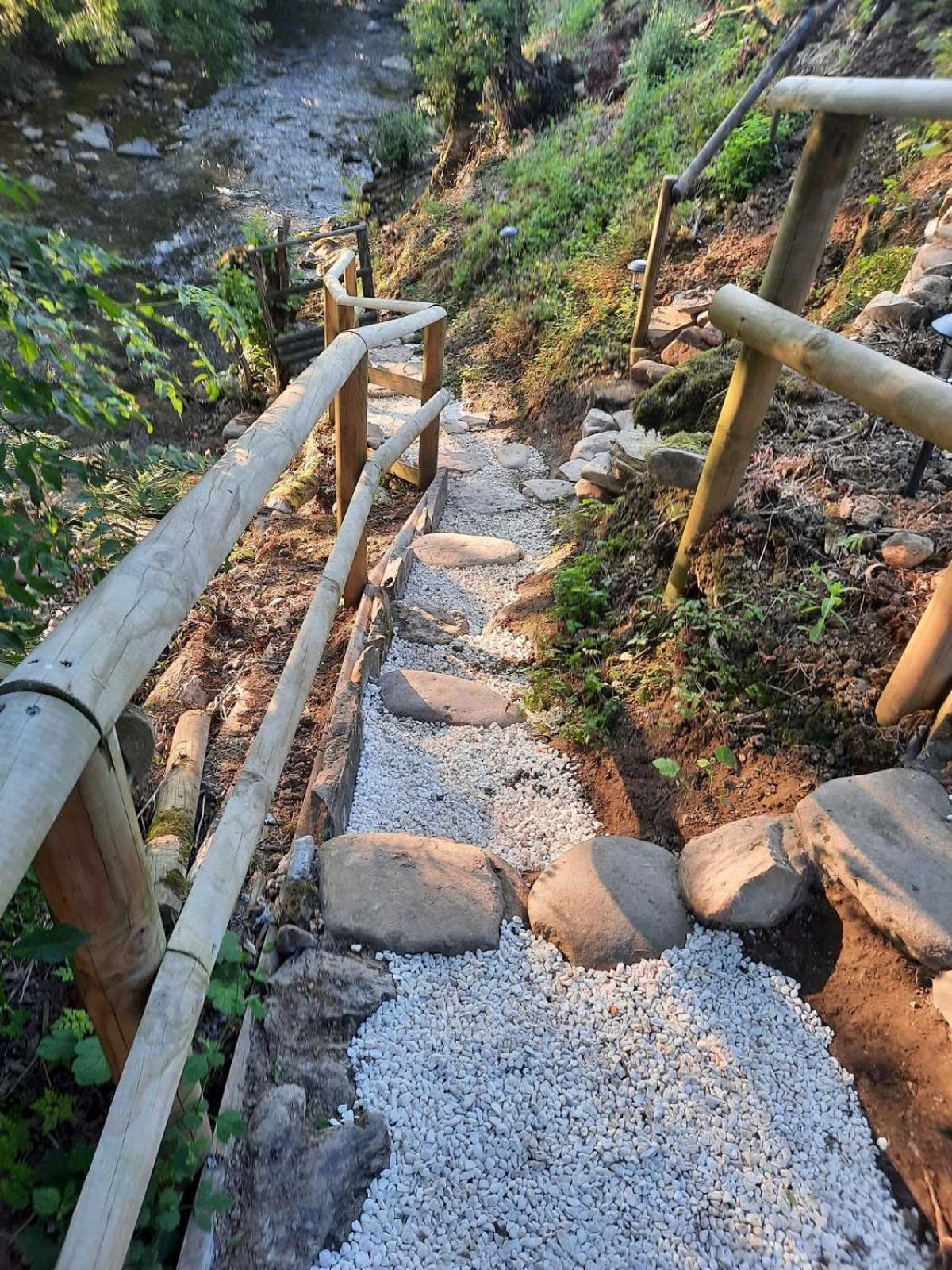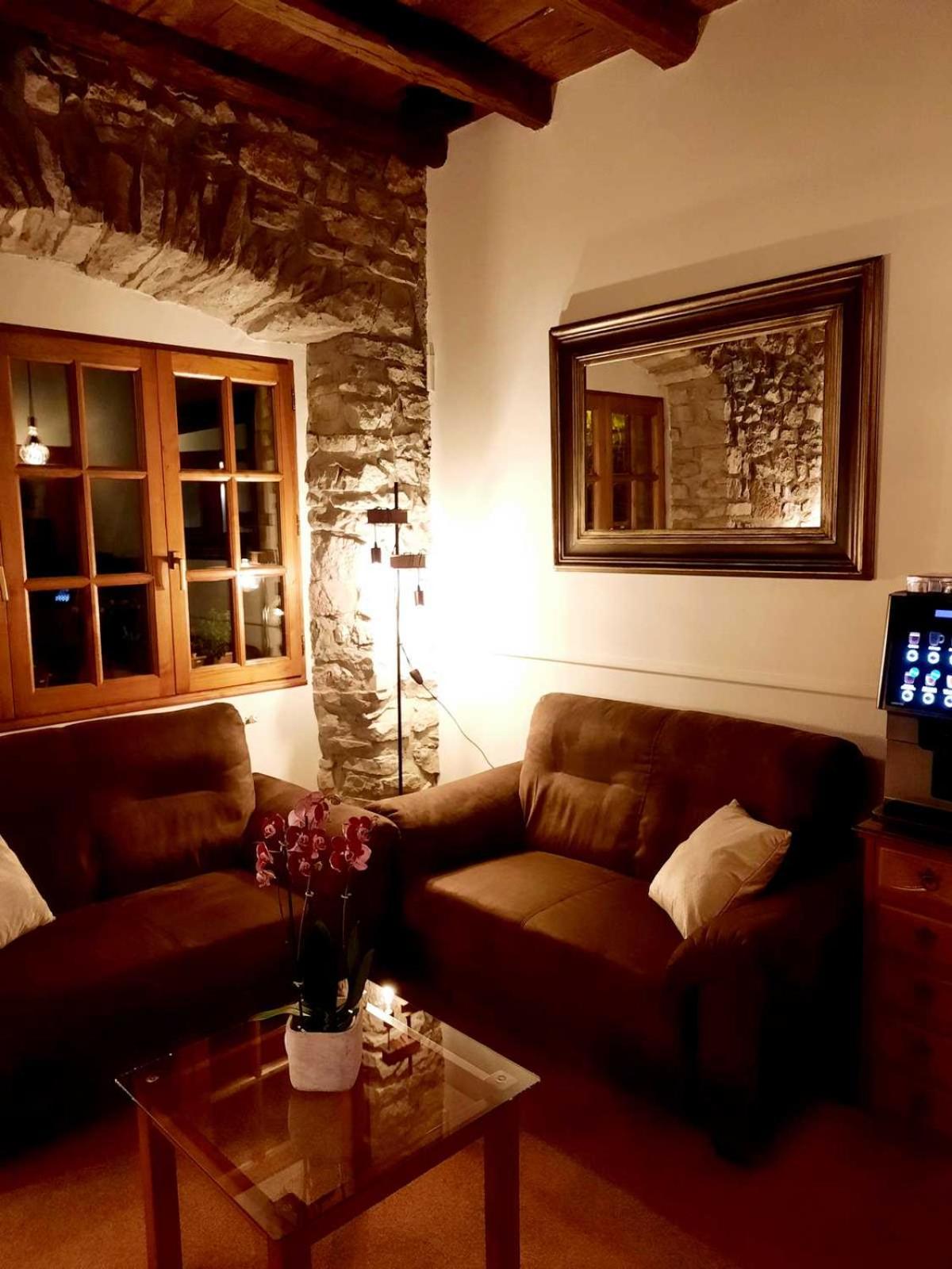Située sur le chemin de St Jacques, cette maison est bien au calme dans la nature, une petite rivière à truite à ses pieds. Restée authentique, cette maison a été restaurée avec beaucoup de goût et de charme et offre une atmosphère apaisante. Le propriétaire - et le personnel - est d'une gentillesse exceptionnelle et parle parfaitement le français. Il y a deux salons très reposants avec machine à café en libre-service. La cuisine et le petit déjeuner sont tout à fait corrects dans une salle romantique le soir. Parking gratuit.