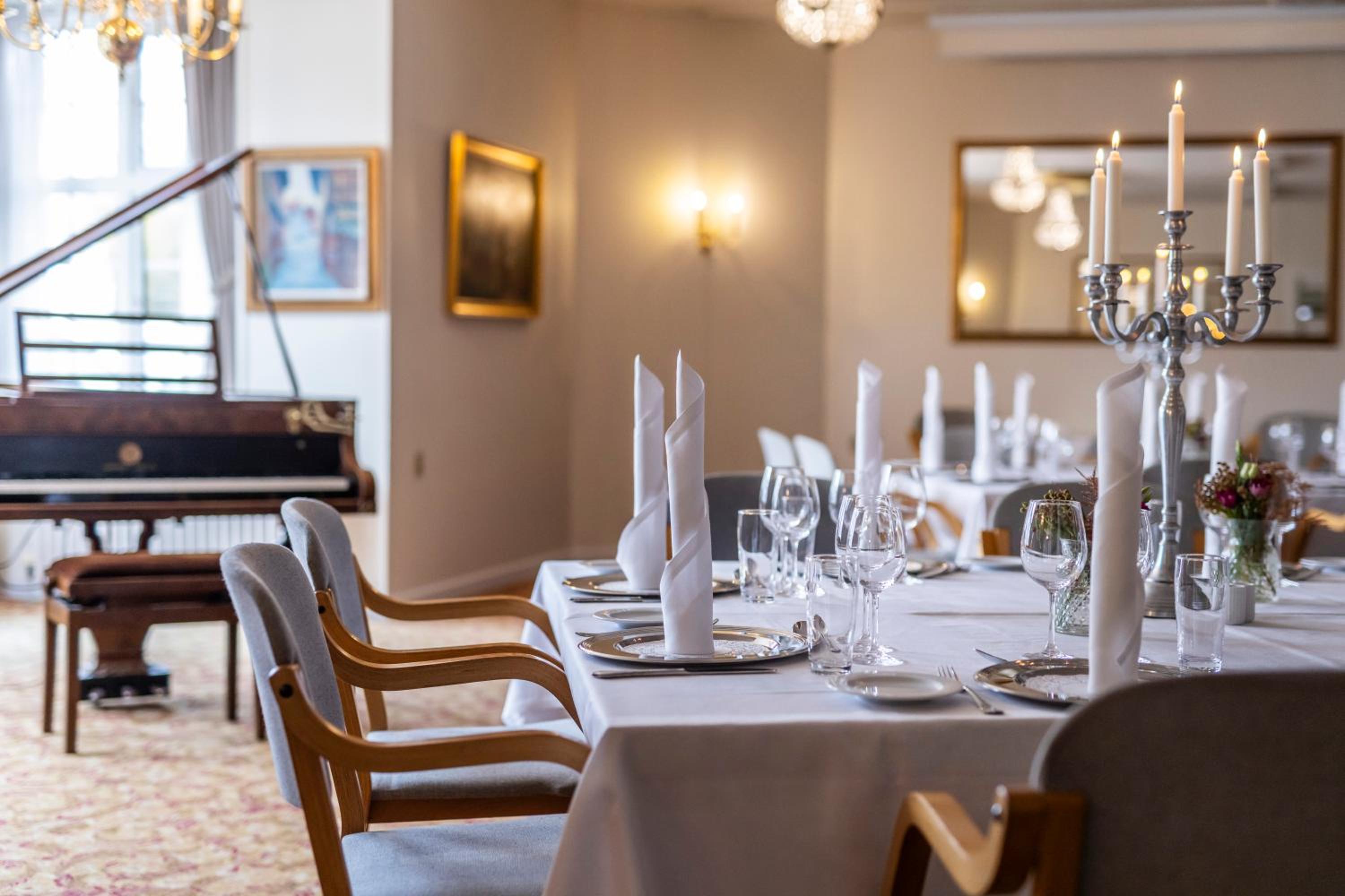 Dejlige lokaler i restaurant med billeder fra lokalområdet og kunst.