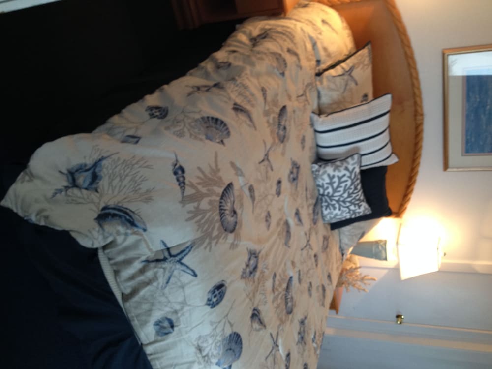I was disappointed in the overall set up and cleanliness of this room. We had a balcony that overlooks the dumpster. We were required to pretty much clean the room on our exit… strip beds, wash dishes,empty trash! Towels were thin and cheap and toilet flushes had to be spaced out! Sadly we will not be staying at this facility on our next visit to Cape Cod.