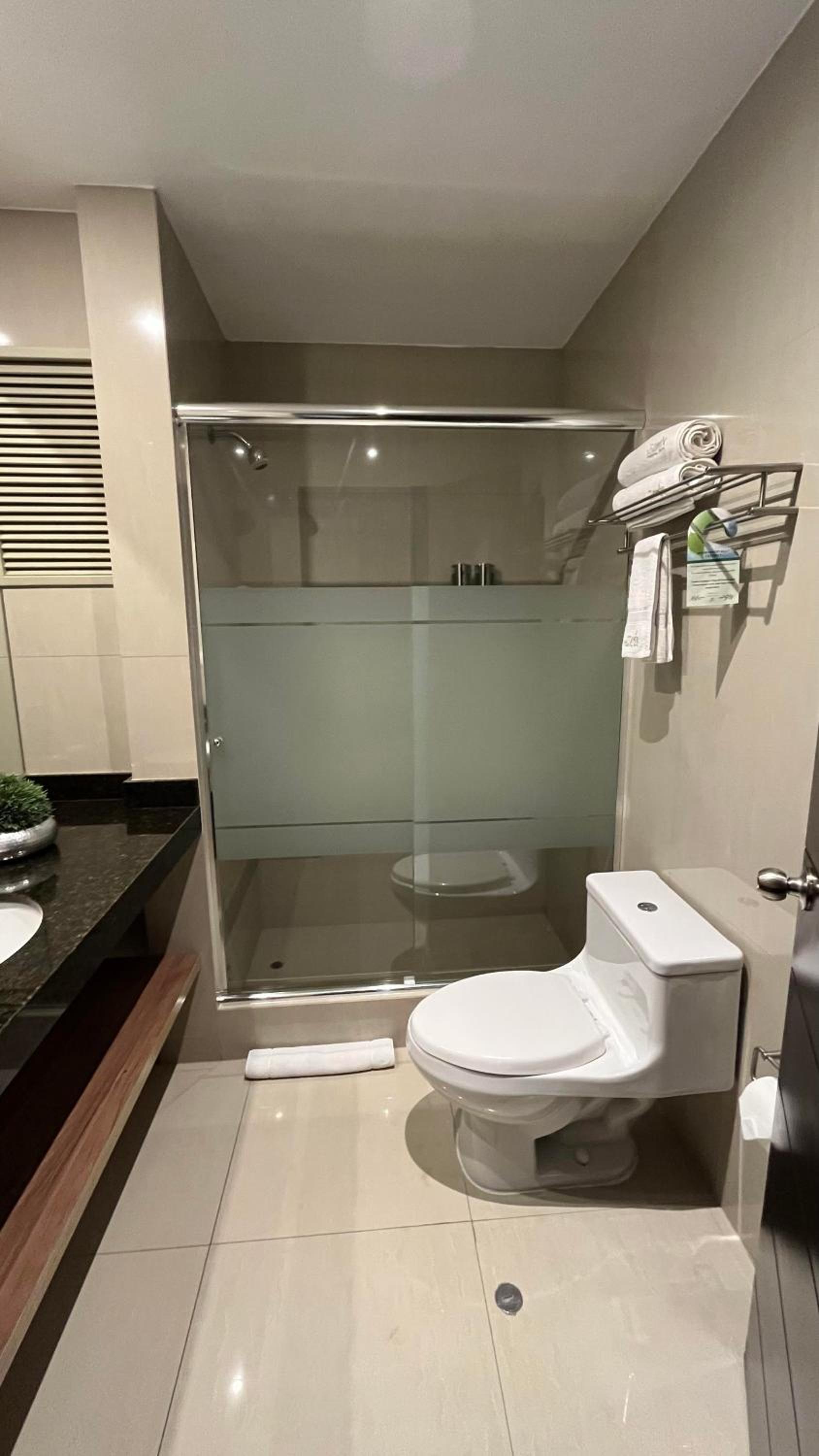 O quarto é amplo e a cama é enorme, ótimo para nós que fomos com uma criança pequena (5 anos). Os funcionários são muito educados e cordiais. O porteiro nos deu ótimas dicas, de locais para conhecer, comprar e também quando fiquei doente (tive uma crise de amidalite) nos indicou uma clínica de ótimo atendimento e rapidez. A comida é muito boa! E quando realizamos o check-out de madrugada, o hotel nos disponibilizou um café da manhã, onde havia suco, misto, bolacha e fruta, tudo bem embalado, achamos de uma delicadeza imensa!