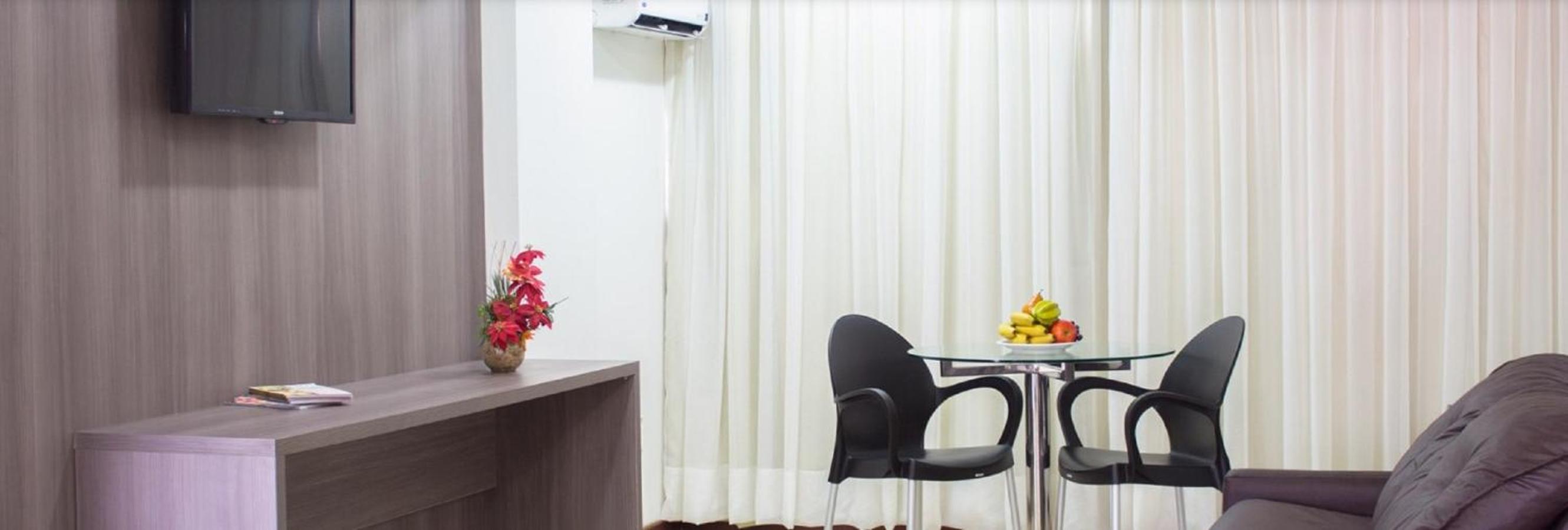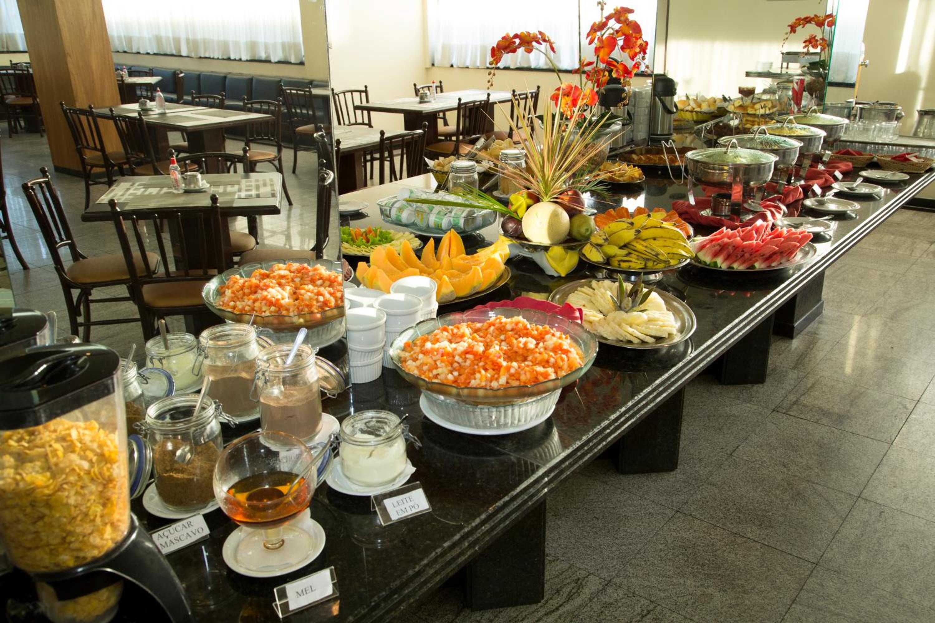 Indulge in comfort with our well-equipped rooms featuring modern amenities. Start your day with a delicious buffet breakfast and savor Brazilian and international cuisine for lunch and dinner.