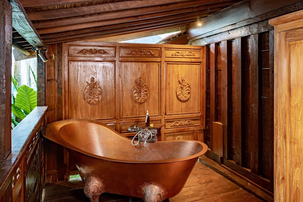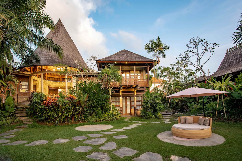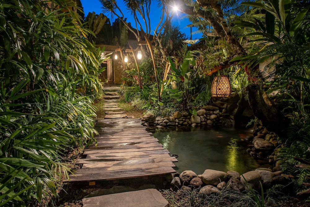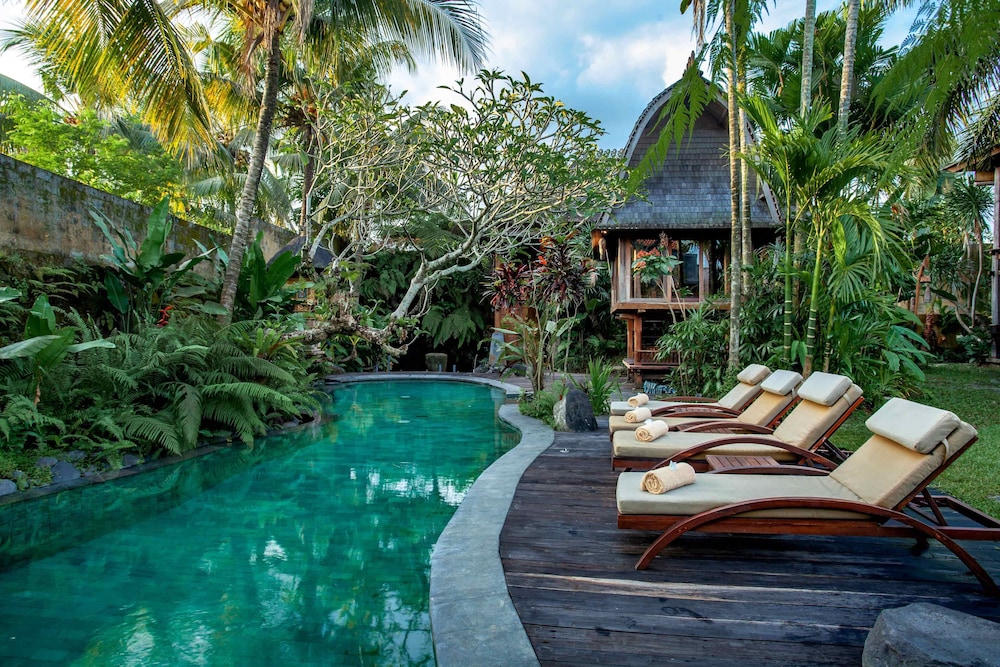 Amazing property in the middle of the jungle , the style is different compared to the other properties , it has an eco lodge vibe . The garden is stunning and you can enjoy the quietness of nature without being too far from Ubud