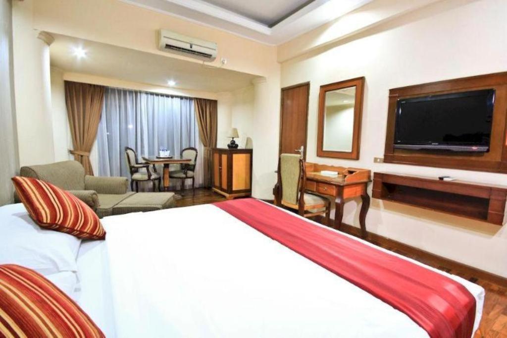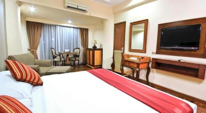 Me and my family stayed here for 1 night because my daughter has to attend event at Gramedia bookstore Matraman st. It was just a quiet suddenly we made reservation. Other nearby hotels were fulled already. So we decided to stayed here. I know formerly that hotel has no pool, thought I bring my kids. So I choose Executive non smoking with large bed. No extra bed available. Hotel was built in 1998. Furniture were old, and damage in some part such as mini refrigerator, chair, coffee maker is stain marks. We stated at 8 floor, in the night almost dawn, I herd music boom from somewhere, and so much man voices coming from outside the door, as if they were passing by and come back again, little bit annoyed. I didn't know what happened. But when breakfast time, around 7.45 to 8.30 AM, it was only me and my husband, no body else. I wonder why.. where is everybody. Not many breakfast choices, we decided to buy breakfast from outside hotel for our kids. Lobby area was very quiet, not seen hotel staff passing by. The hotel really old, lonely, dim light..