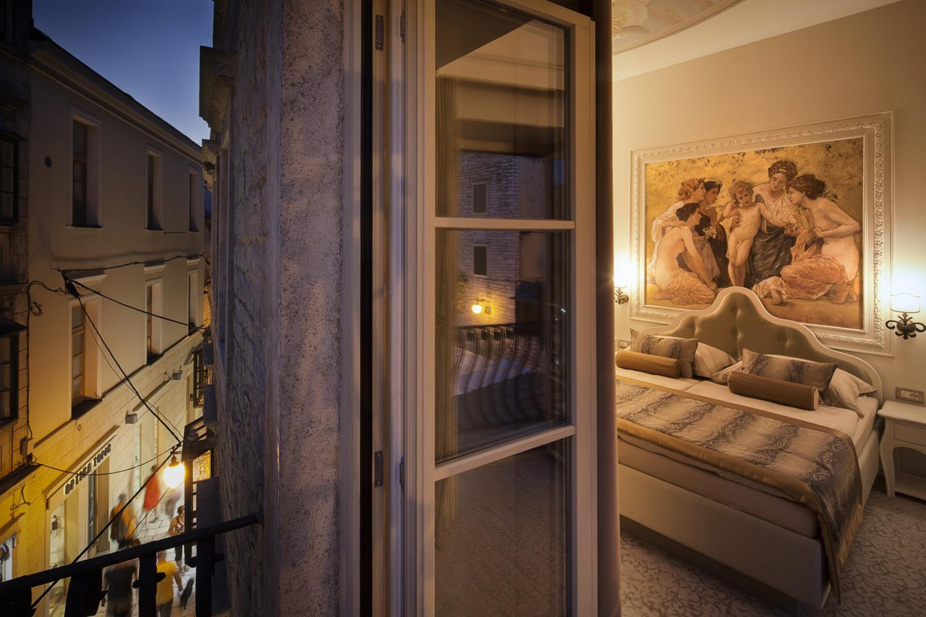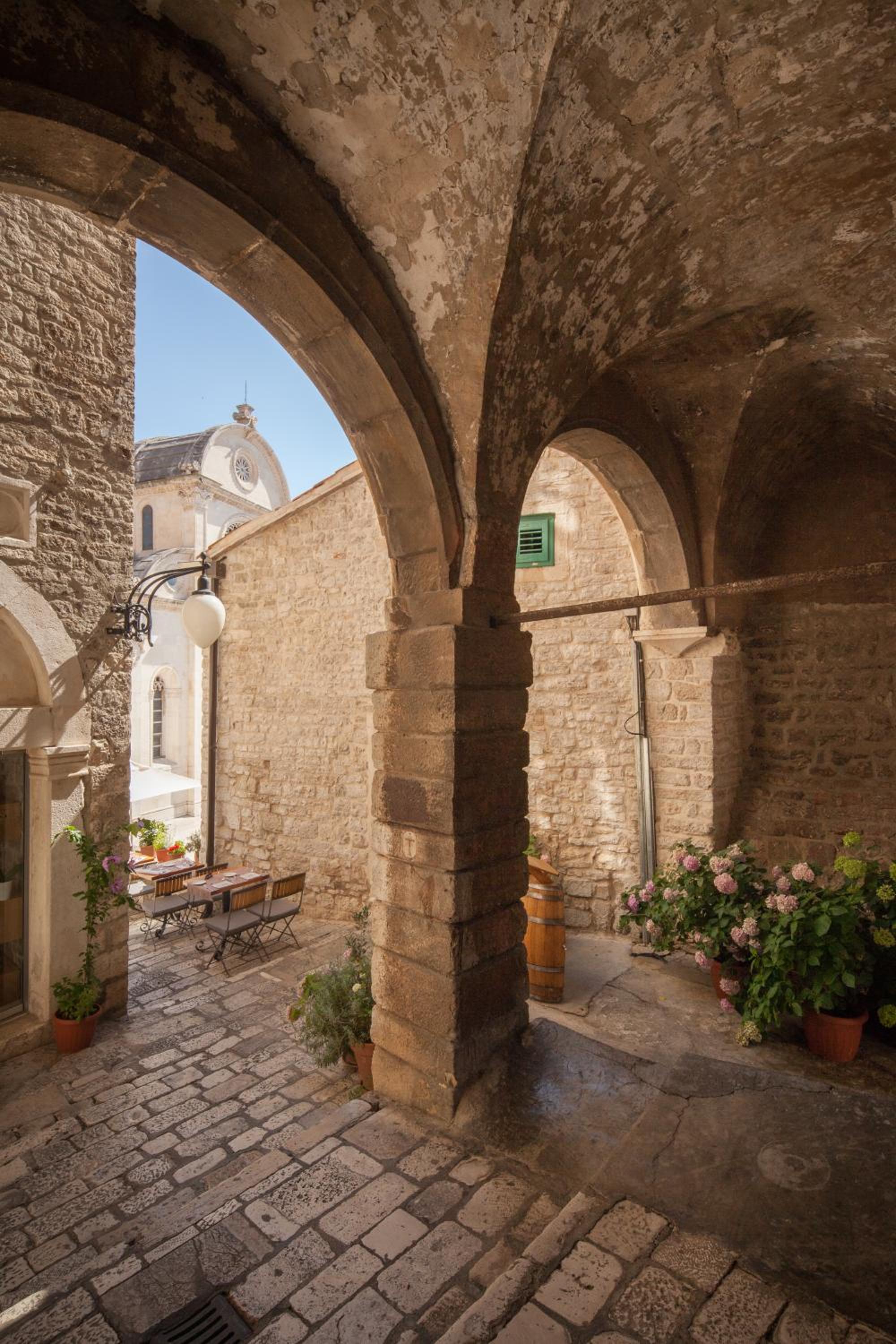 Heritage Hotel Life Palace in Šibenik offers elegant rooms with free WiFi, air conditioning, and flat-screen TVs. Guests can relax in bath robes and slippers provided in each room, ensuring a comfortable stay.