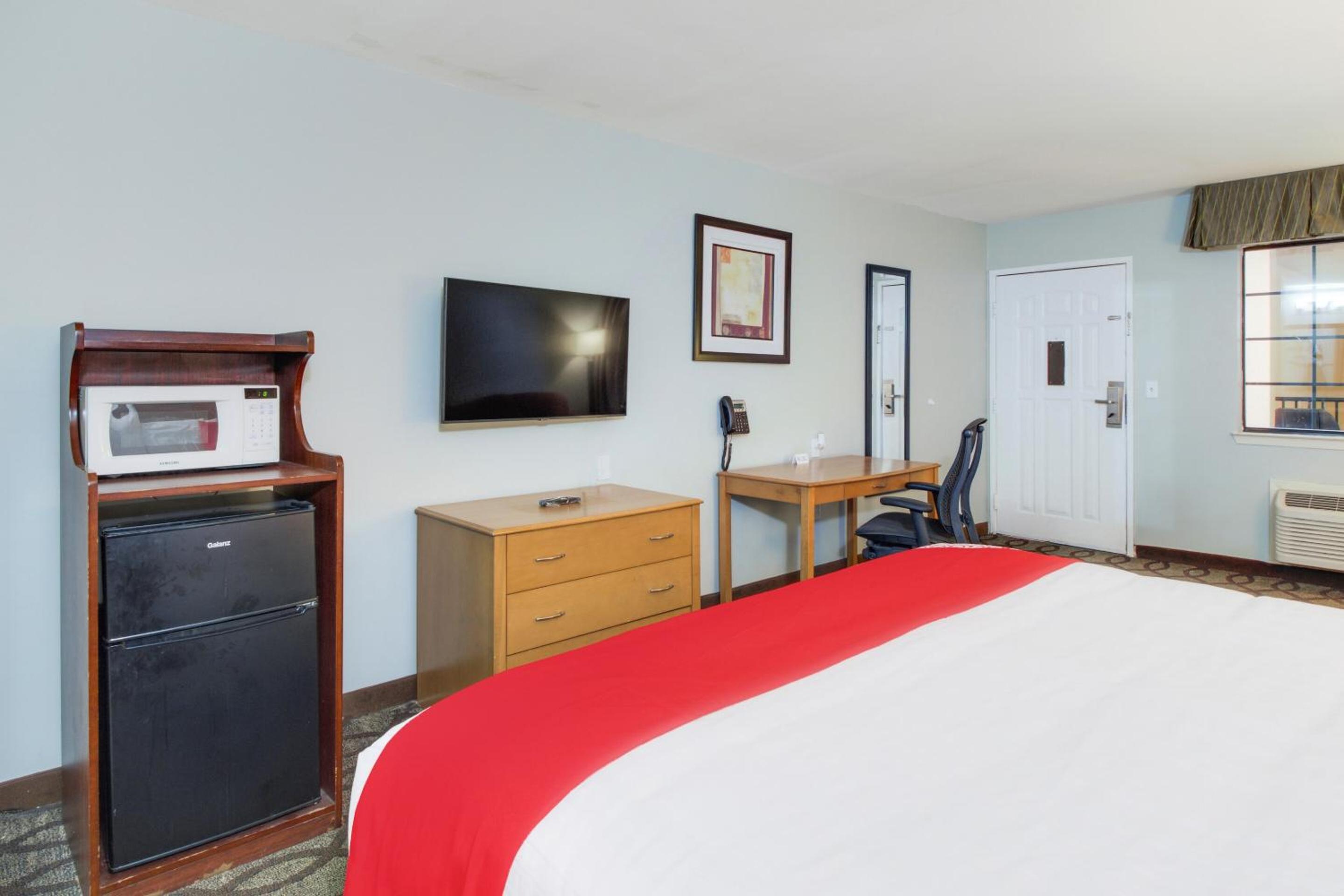 Front desk clerk was super sweet and accommodating and allowed me to check in early due to it being slow because beginning of the week the manager was understanding and helpful. They have a light breakfast which wasn’t bad and easy to get around gas station next door amazing as well and the chicken is better than a lot of restaurants! I was able to check in quick and not bothered at all. The only thing is the room was not clean and worn down but it’s the least of my concerns at that moment. Thank y'all