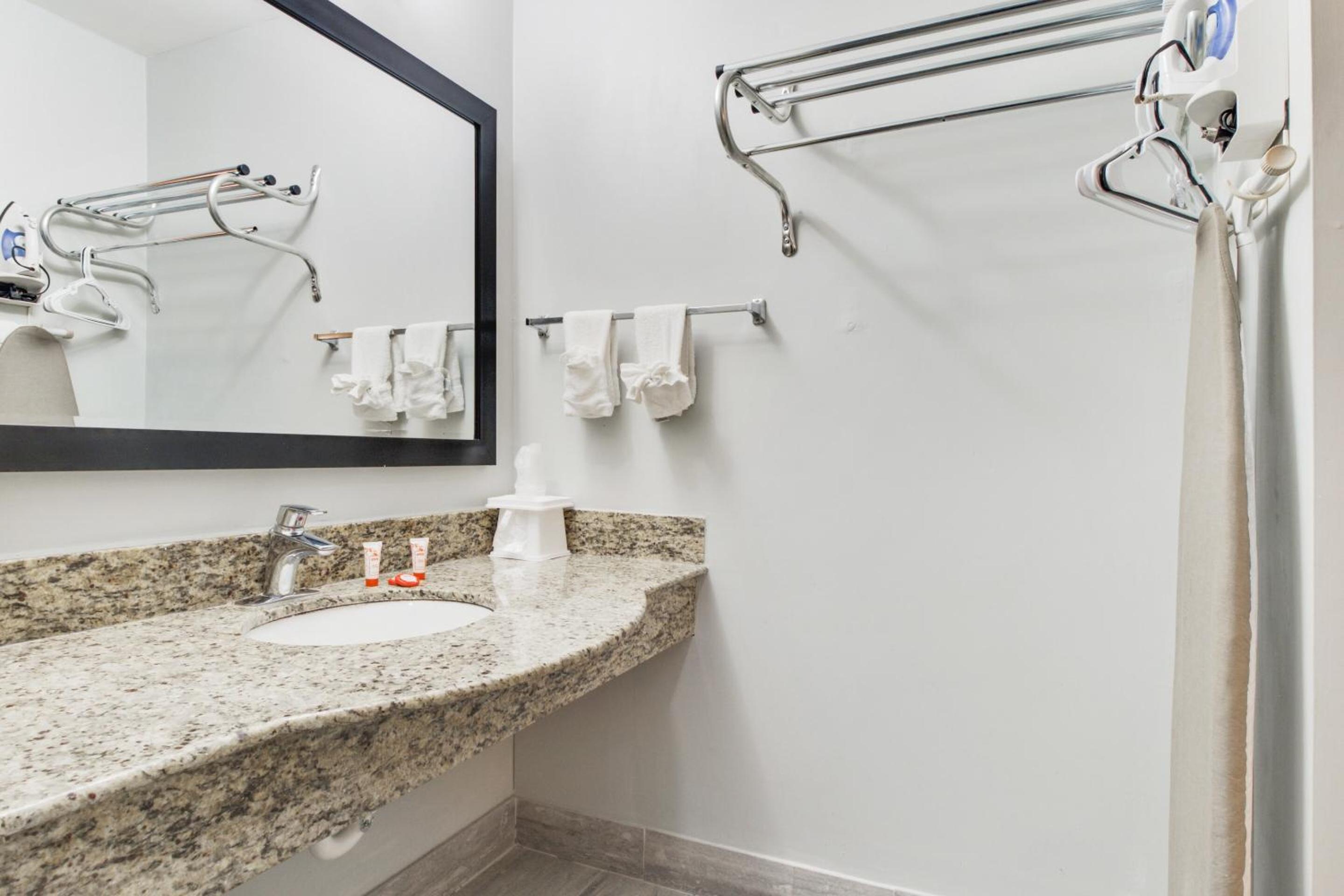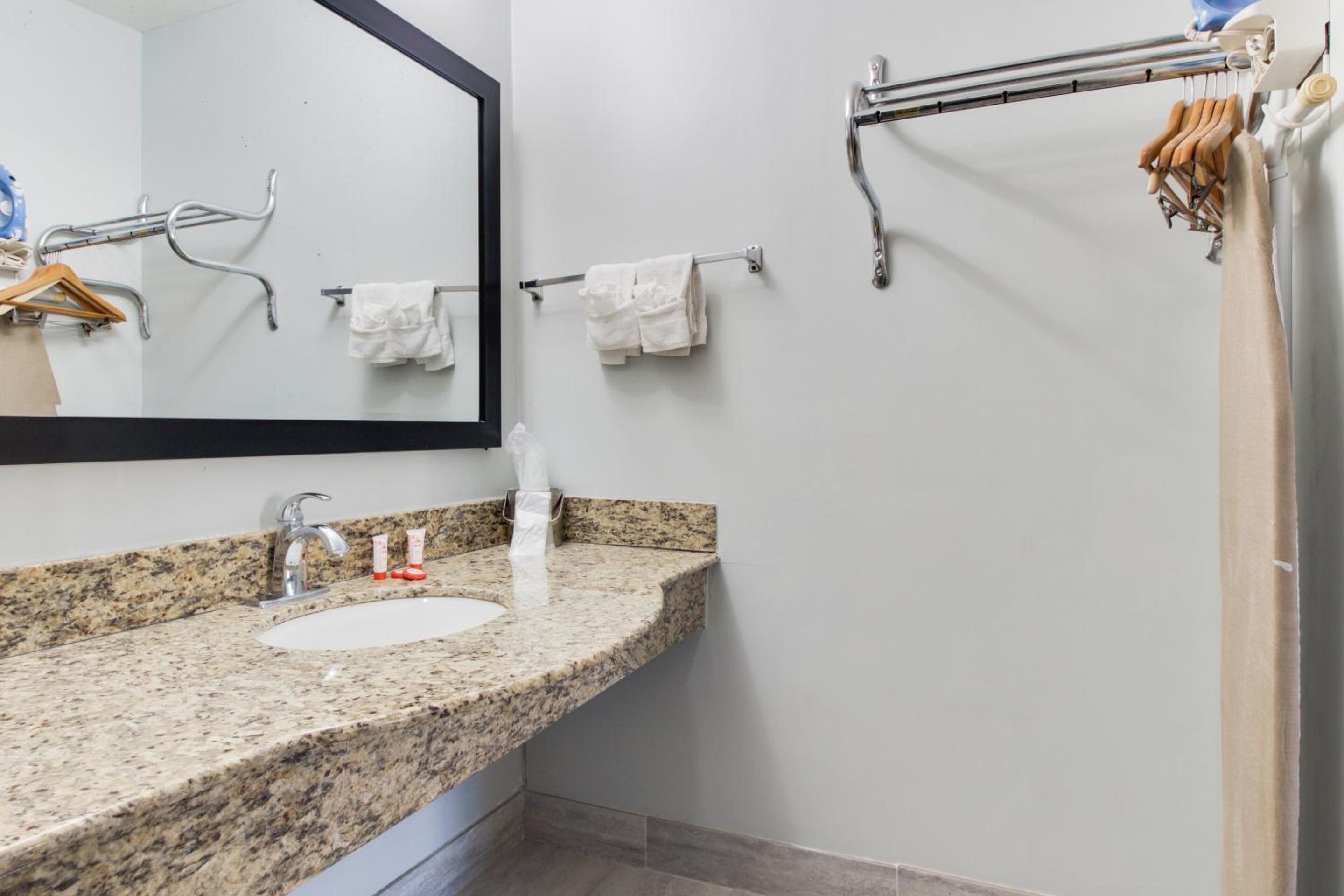 bathroom needed some remodeling or fixing up. Needed more mirrors and the wifi/tv channels was slow. I wish there were waffles at breakfast. The pictures online show a waffle maker... Hopefully they bring that back soon.