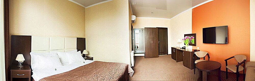 Удобная кровать, приятное постельное белье. Бесплатная вода, зубной набор, шампунь, гель. Наличие балкона. Очень близко от моря-расположение-отличное.
