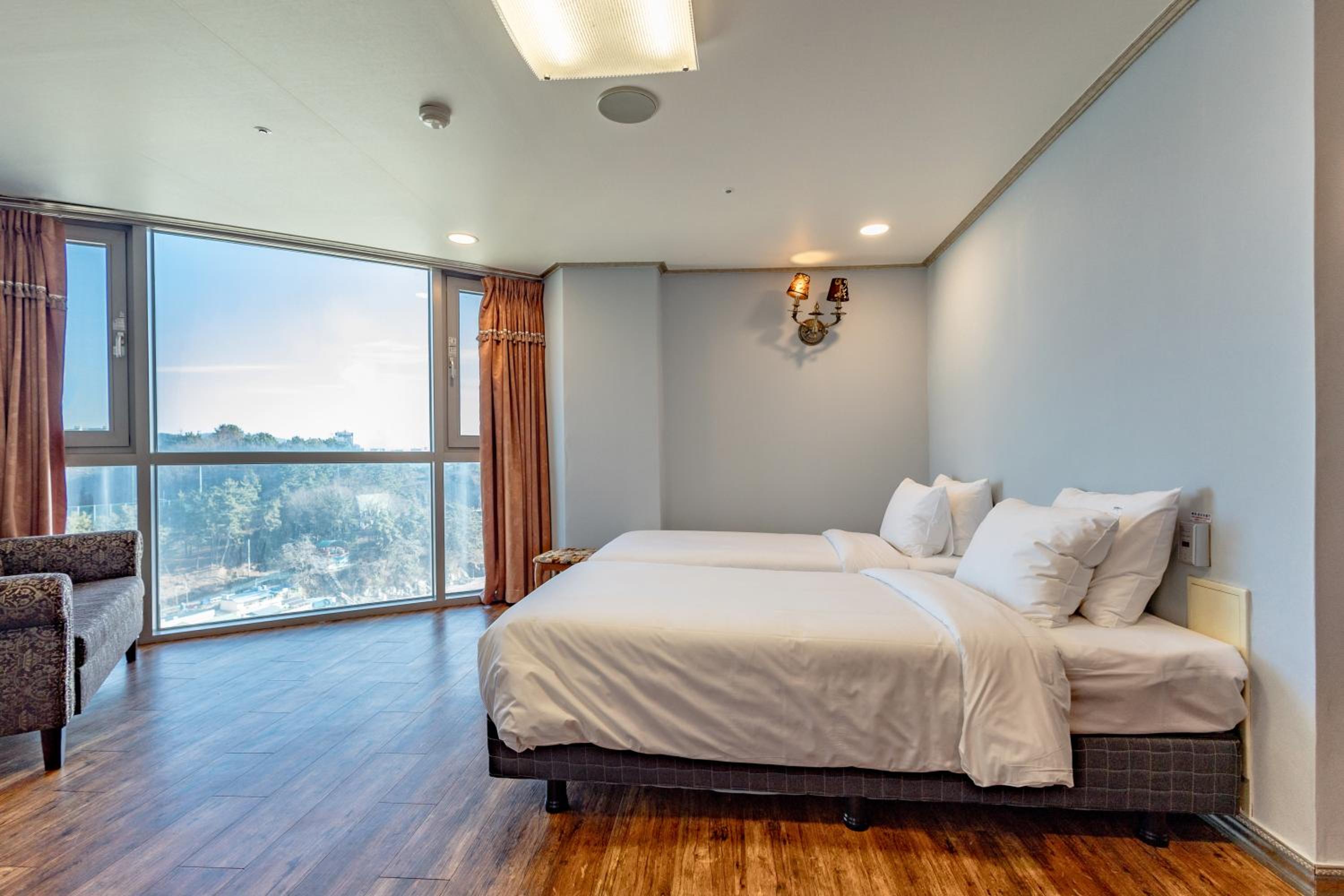 창문 열면 바다가 펼쳐져 있어 뷰가 좋고, 바로 앞에 해수사우나가 있어 좋았어요