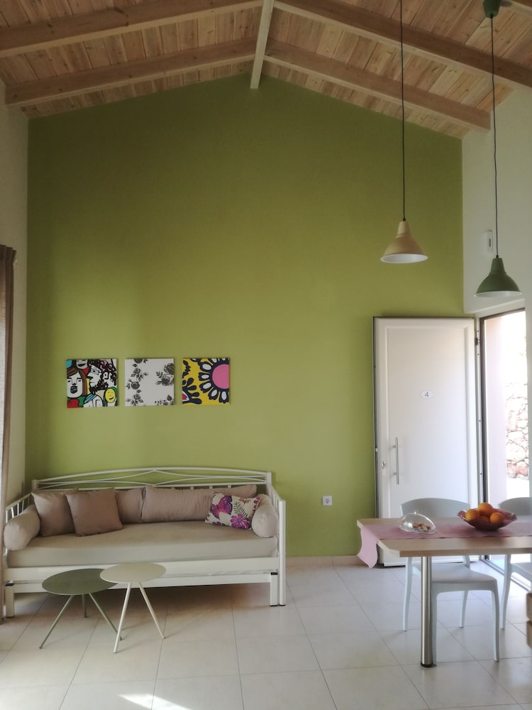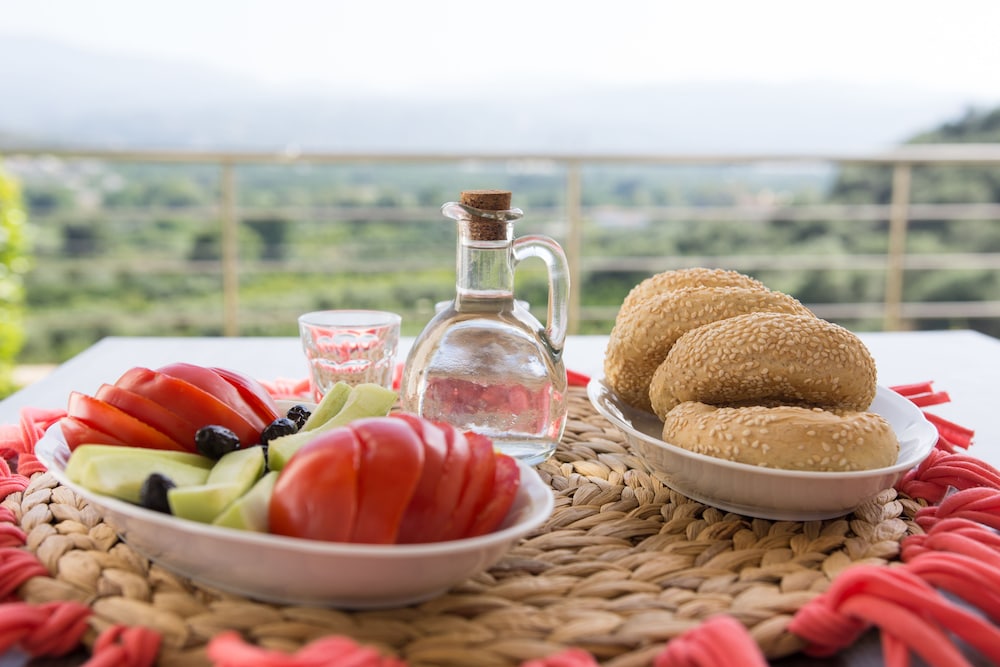 Not only is the place specifically designed for wheel chair users, the owners go out of their way to ensure guests have everything they need. There was a big bowl of fruit in the fridge, along with a bottle of water, juice, homemade jam, and raki, as well as a bottle of wine on the shelf. We were met by the owner, who proudly showed us around, pointing out the ecologically friendly design of the construction, such as the solar heated pool. There is a special chair to lower one into the pool, and a chair to get into upon exiting, so as not to get one's own chair wet. There's even a hot outdoor shower to rinse off. I, a former lap swimmer, got into a pool for the first time in 20 years. Nirvana!