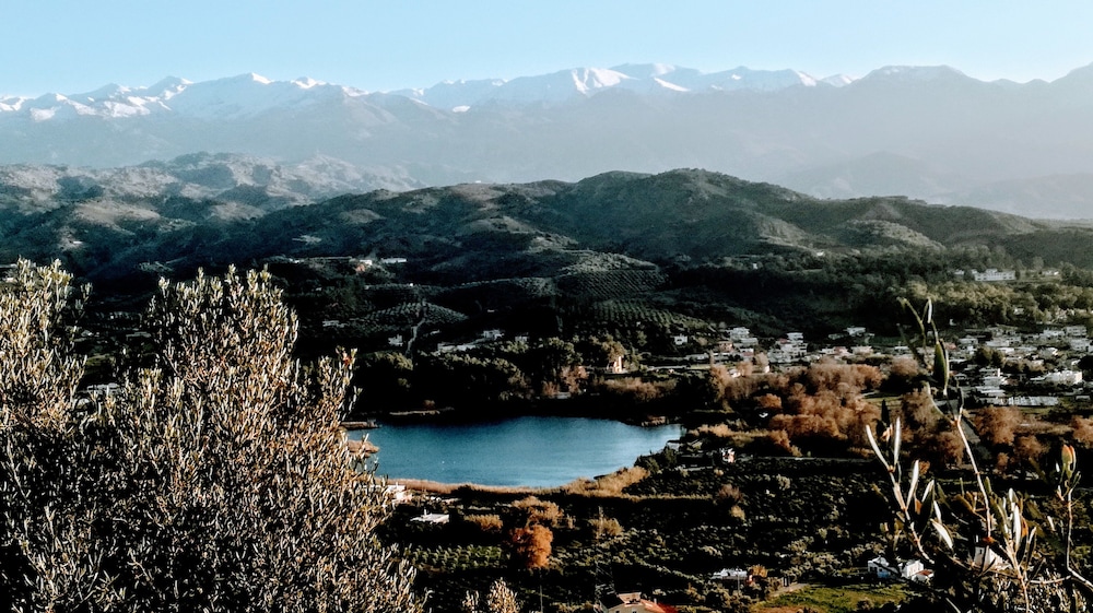 The views in all directions were spectacular: olive trees, orange groves, a lake, a church, flowers and shrubs. I made a video, so now I can go to that special place of relaxation at will, and hear the birds chirping, goats bleating, rooster crowing, and bells ringing. I didn't want to leave, and hope to return. This place is a real gem. Lovely lodging, lovely views, lovely people.