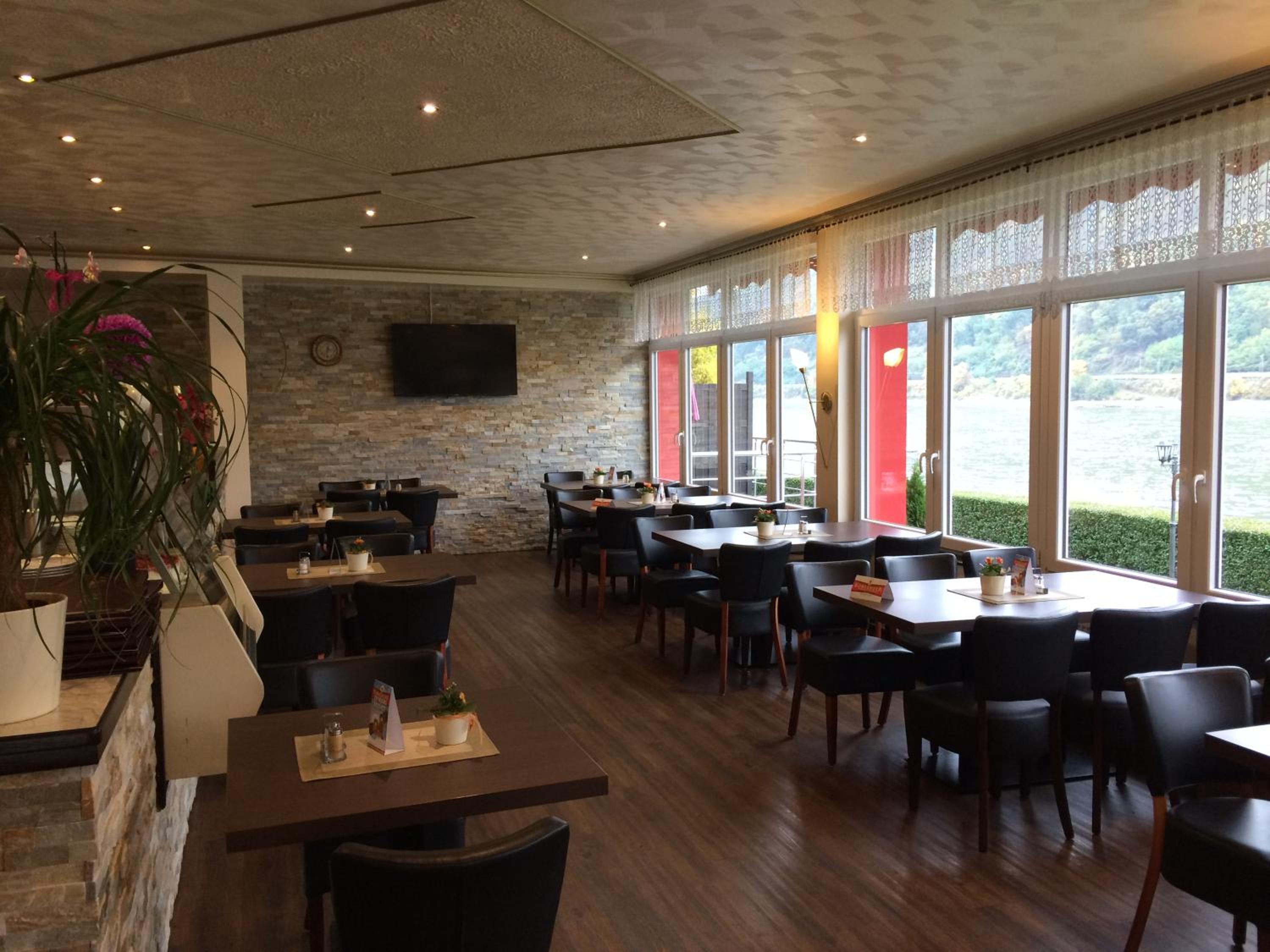 Super Lage in der ersten Reihe direkt am Rhein, toller Biergarten mit super Aussicht, Zimmer mit Balkon und hervorragendem Rheinblick direkt am Schiffs Anleger, kostenloser Parkplatz, gutes Restaurant, riesige Eisbecher