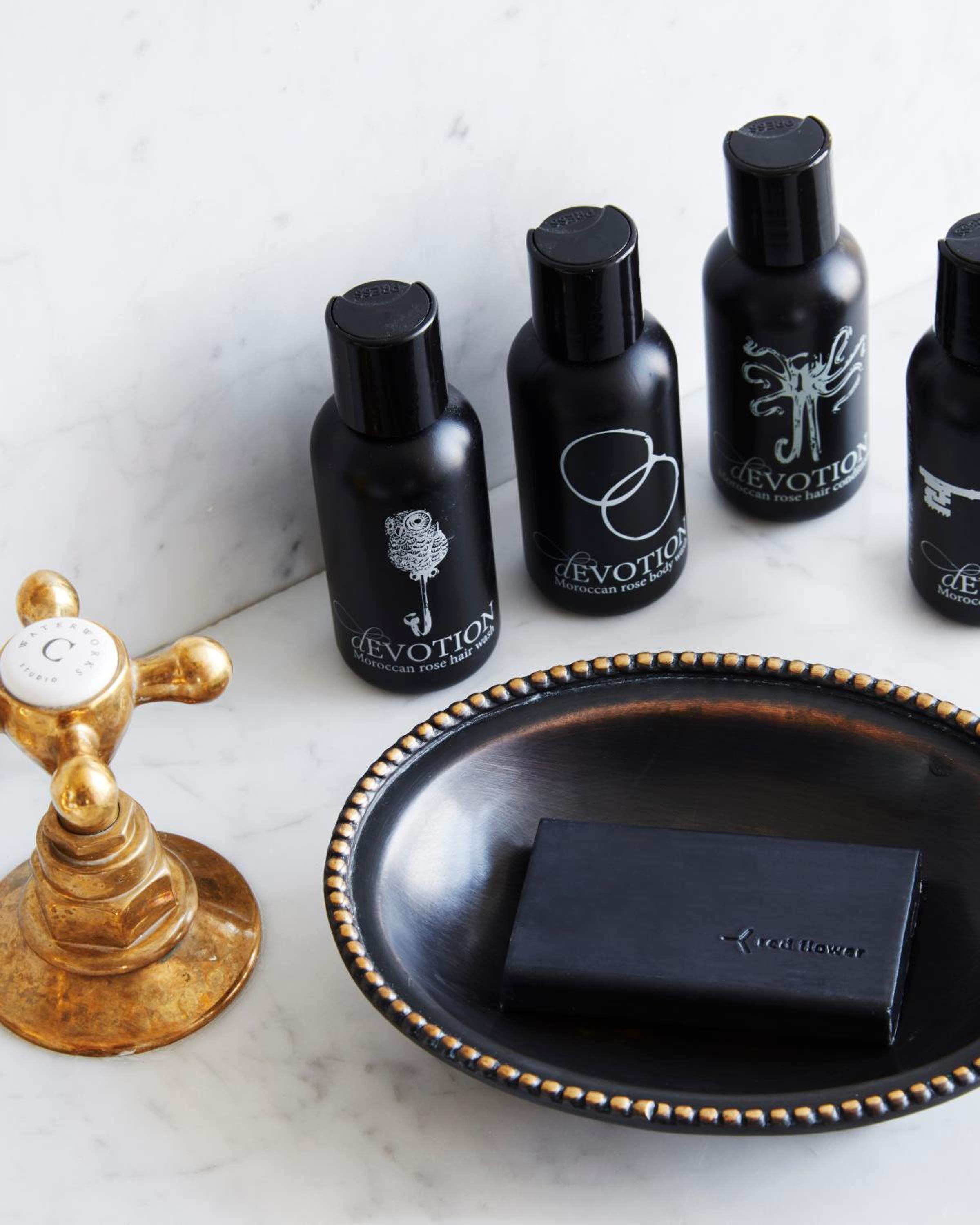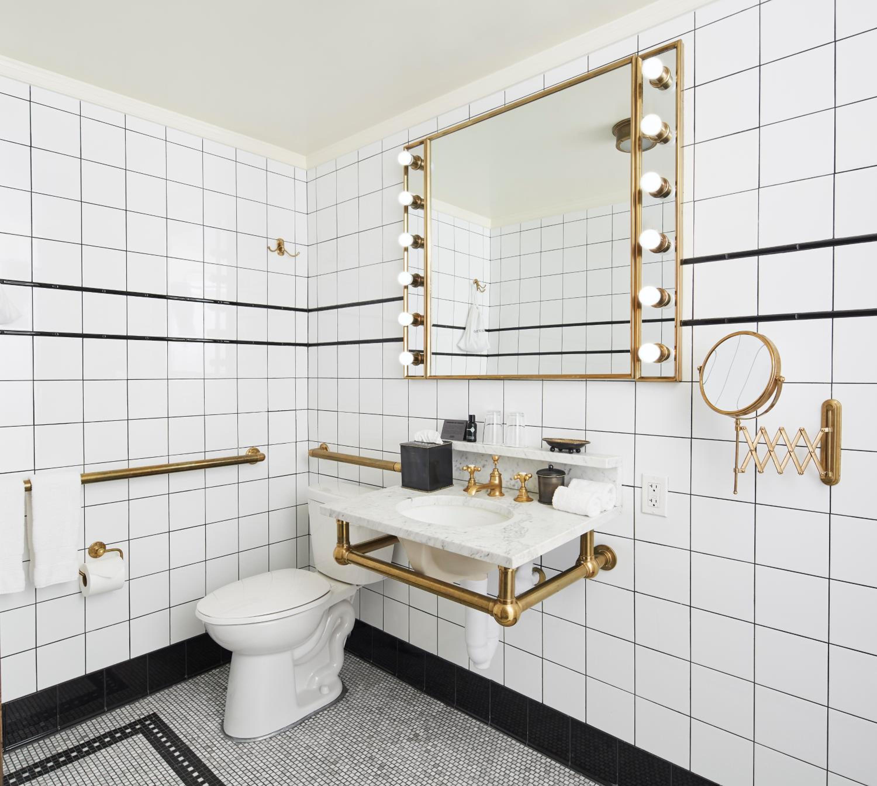 Indulge in a relaxing bath in the marble mosaic en suite bathroom, complete with a deep soaking bathtub and brass rain shower. Enjoy local products from the minibar and take advantage of complimentary WiFi access in every guestroom.