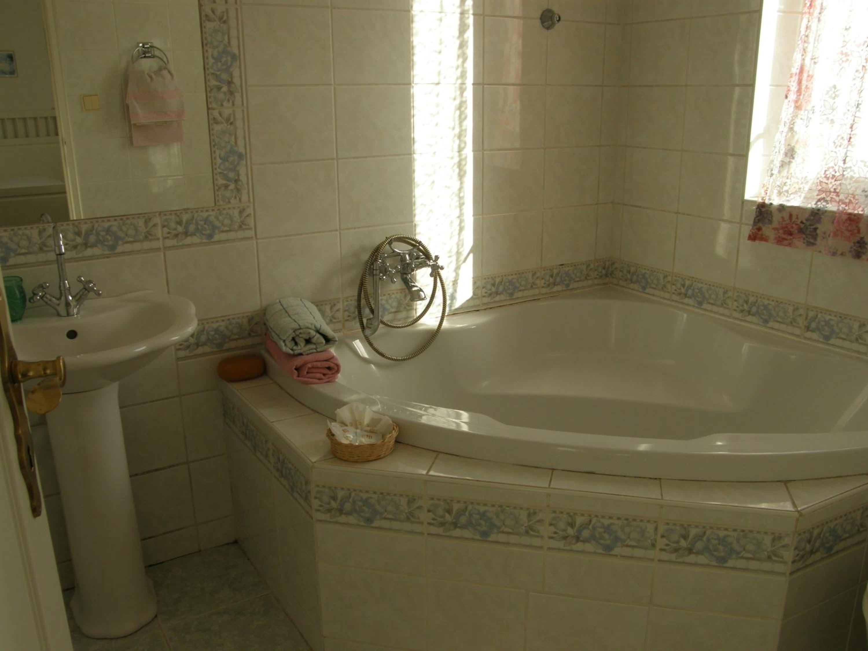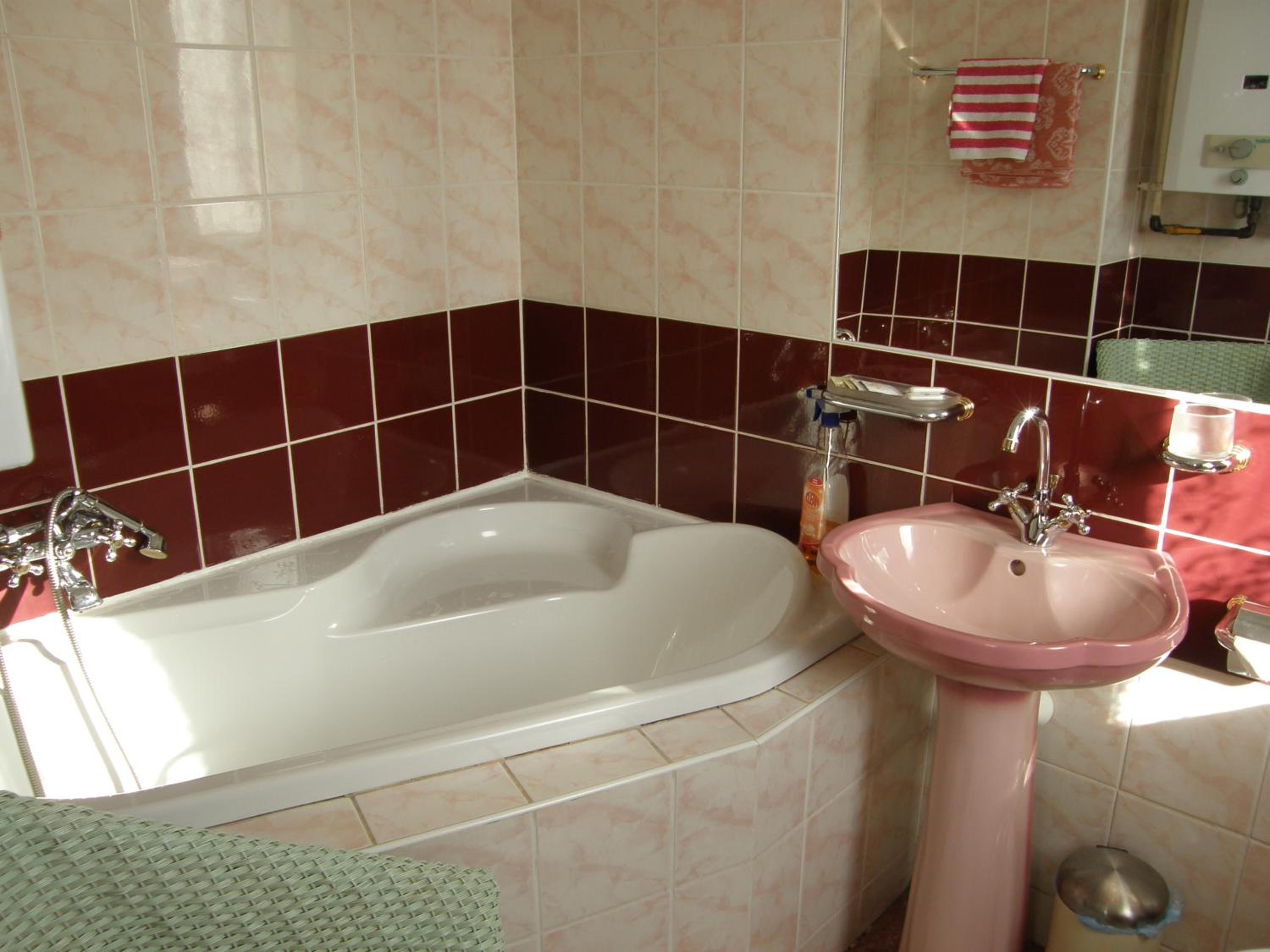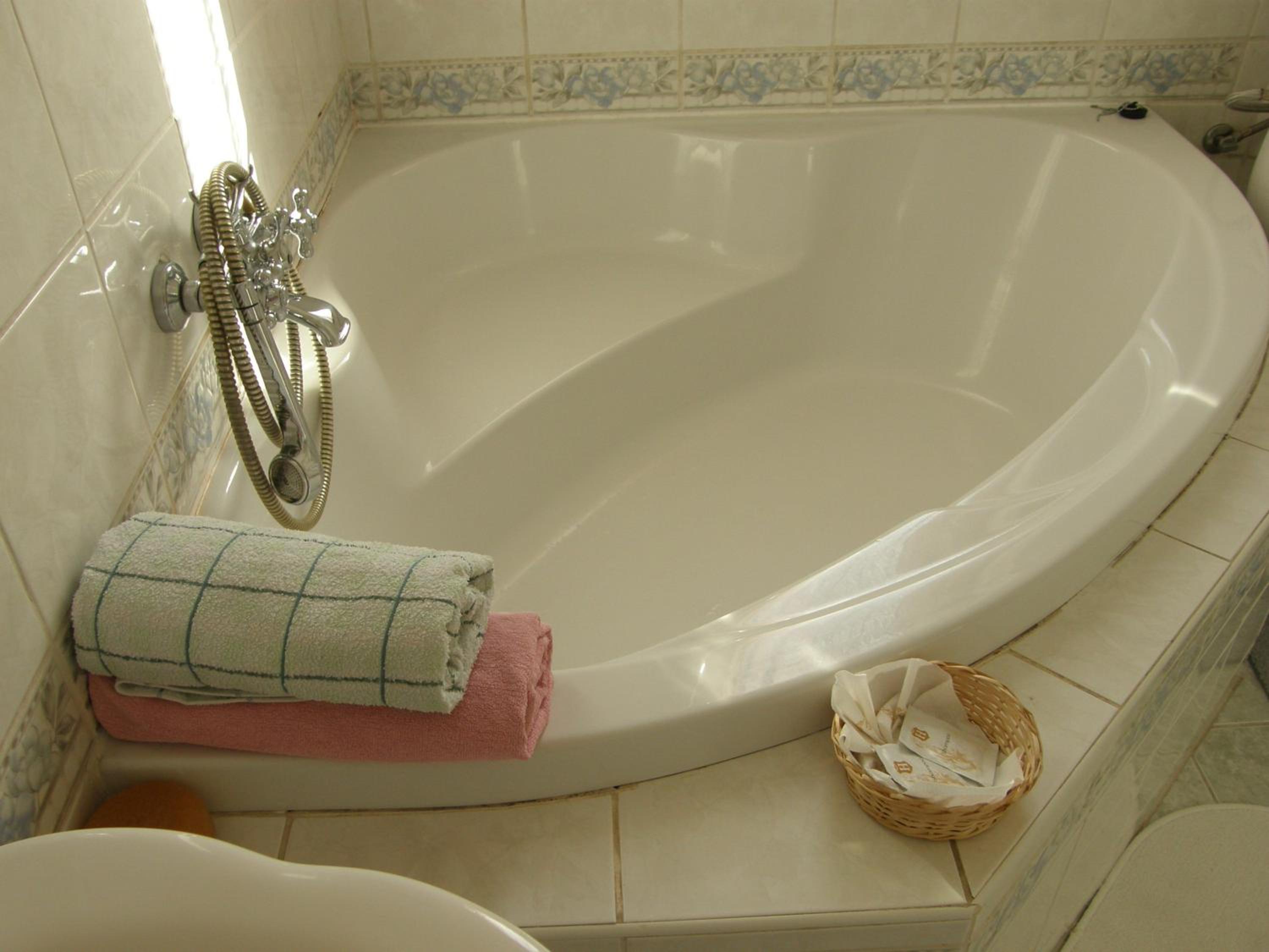 Location, nice bathroom with a bath tub