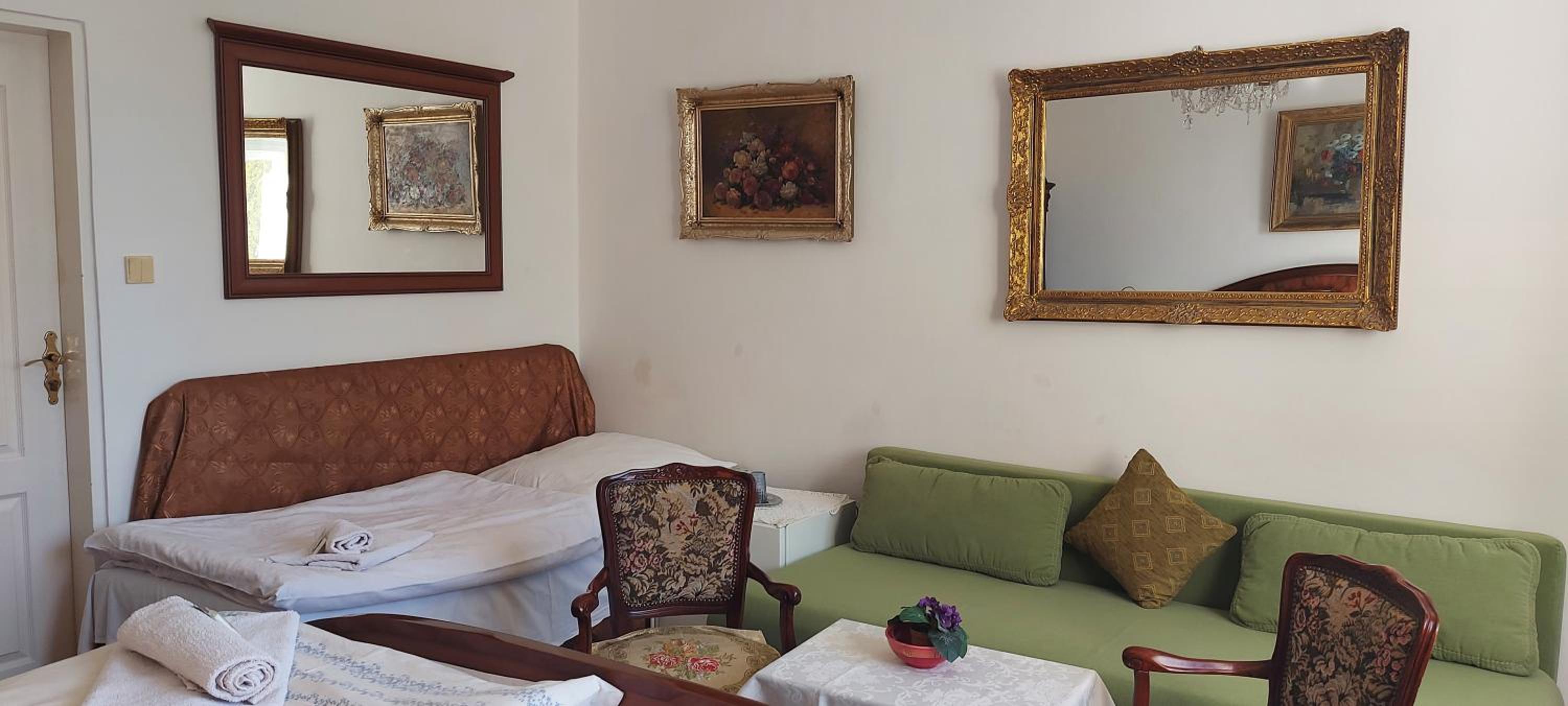 Hotel je spíše penzion ve vile. V koupelně byl průtokový ohřívač společný pro umyvadlo a srpchu zároveň, ze sprchy teklo a rozbitá sprchová hlavice byla zalepená/opravená lepící páskou. Ubytování se prezentuje jako hotelové, ale při vstupu do domu je nutné využít erárni plastové pantofle - aby nemuseli tak často uklízet??? V místě je k dispozici bazén ale po přijedu jsme se dozvěděli o poplatku za využití - 200 Kč na osobu a hodinu, při rezervaci ale uvedeno nebylo. Snídani nabízí formou bufetu za doplatek 250 Kč na osobu. Během pobytu 4 nocí nám jednou vynesli na požádání odpadkový koš, jinak žádný úklid neproběhl. Vybavení jak vily tak pokoje hodně zastaralé z 90-tych let, zdi špinavé, chtělo by to už vymalovat. Je poznat, že už několik let se do ubytování neinvestuje. :-(