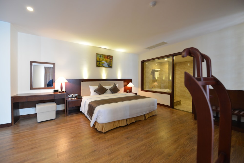 Mình đi dịp tết nên vắng khách, khách sạn khá yên tĩnh, tuy nhiên không có đa dạng dịch vụ lắm. Phòng rộng rãi, sạch sẽ, nước nóng hơi chậm chút xíu. Nói chung là hài lòng