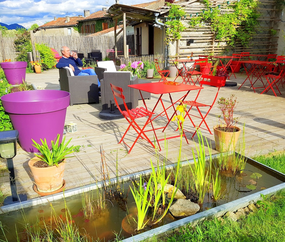 Accueil sympathique, chambre agréable, calme et confortable, avec possibilité de se reposer dans un jardin très calme et agréable.