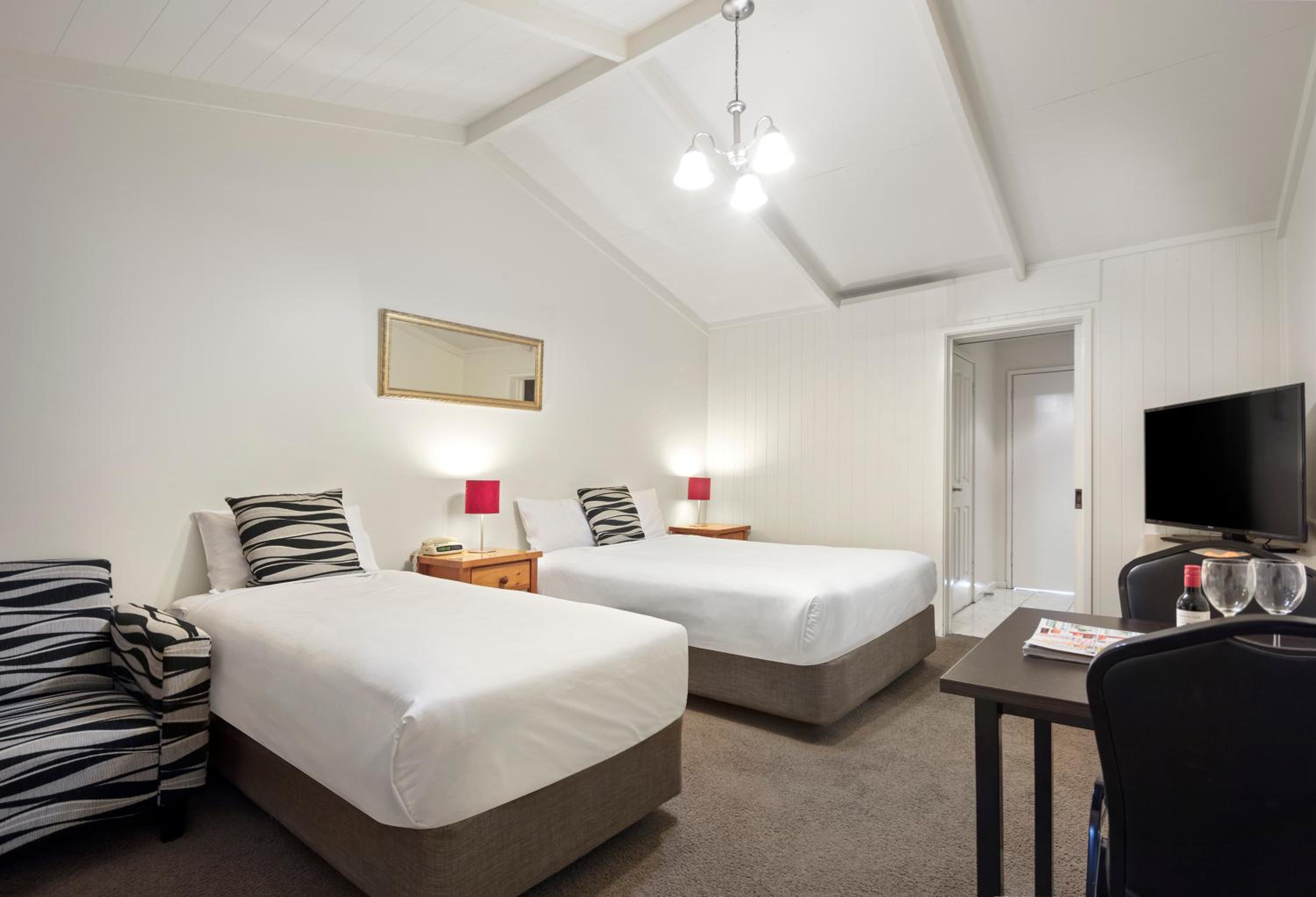 Very happy to be out in the older motel units because we had our car at the door. Our unit was a twin room with plenty of room.