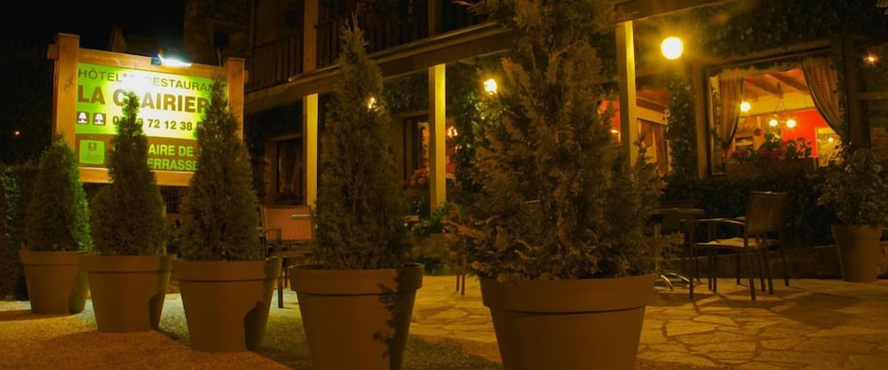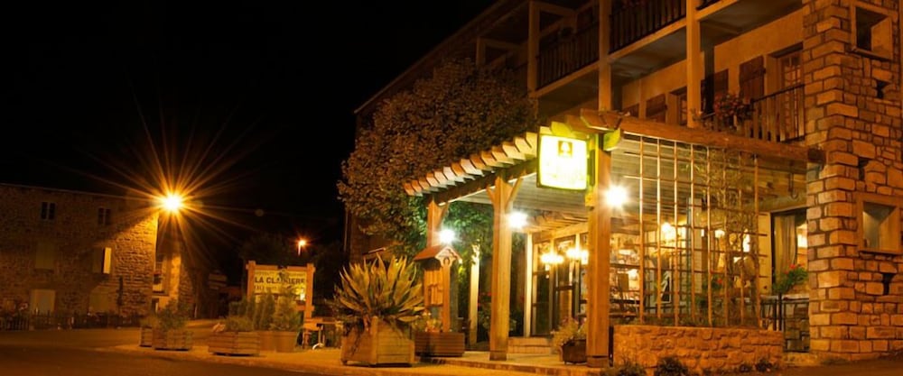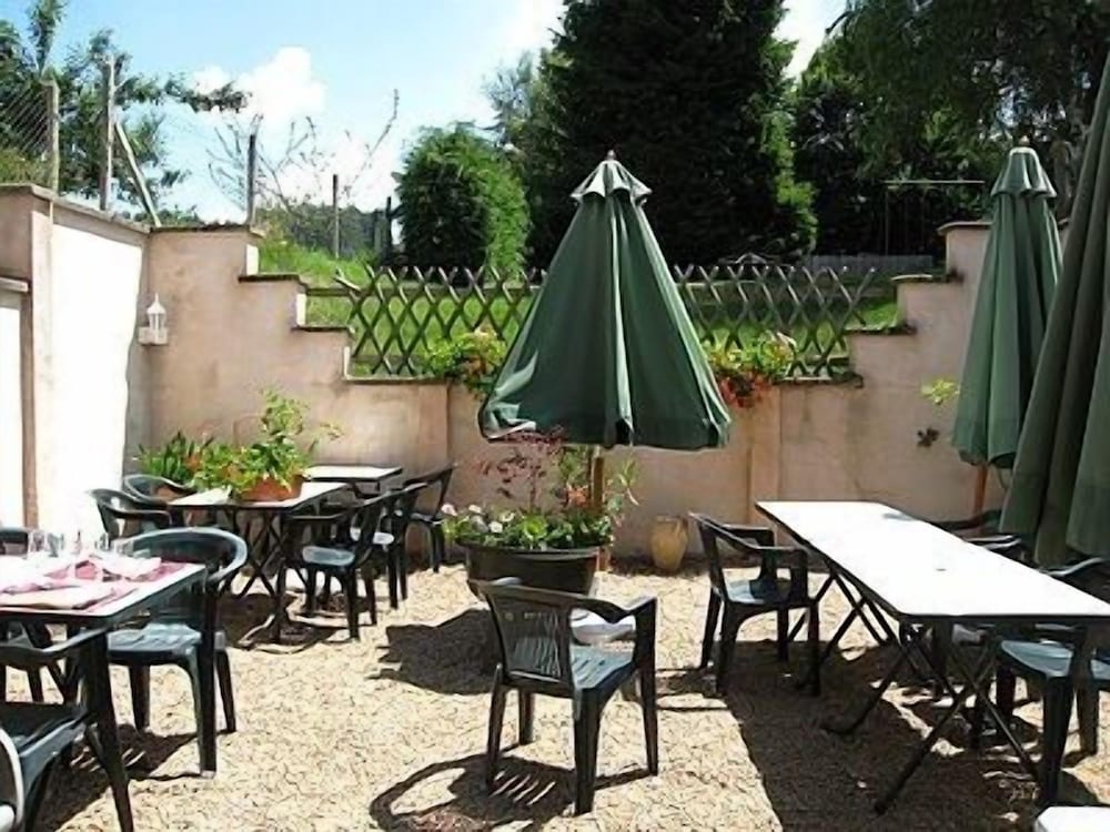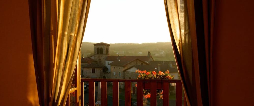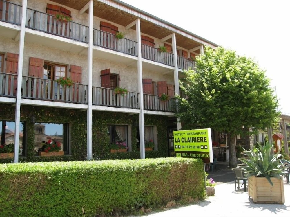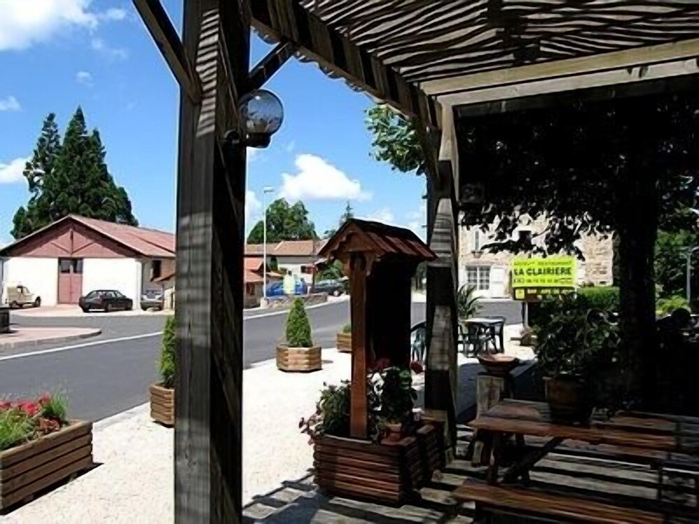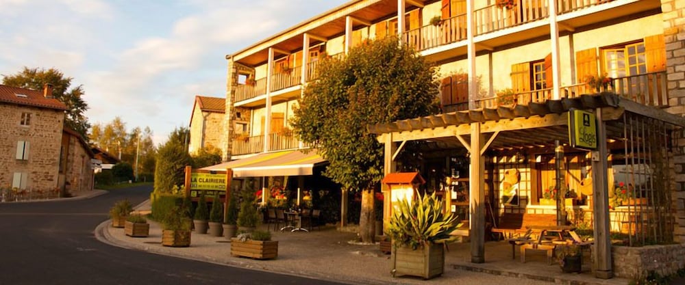 Enjoy the beautiful views from the terrace and garden at Hôtel la Clairière, located steps away from Parc Naturel Regional Livradois-Forez.