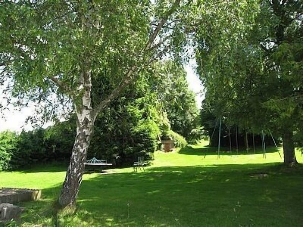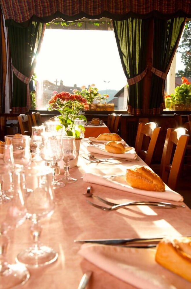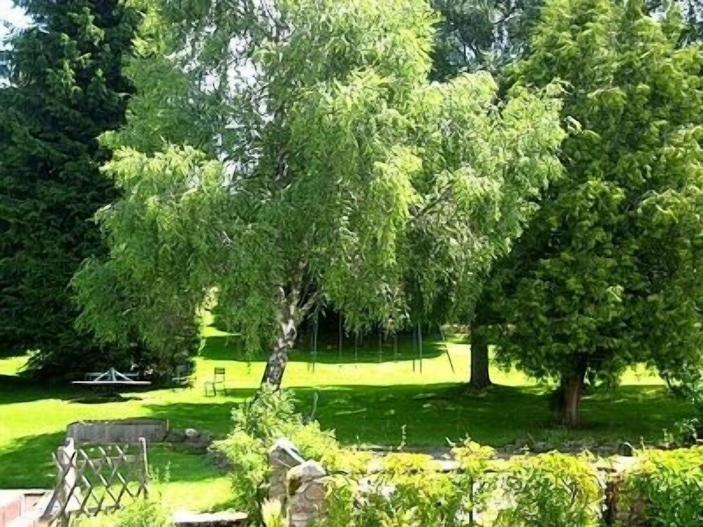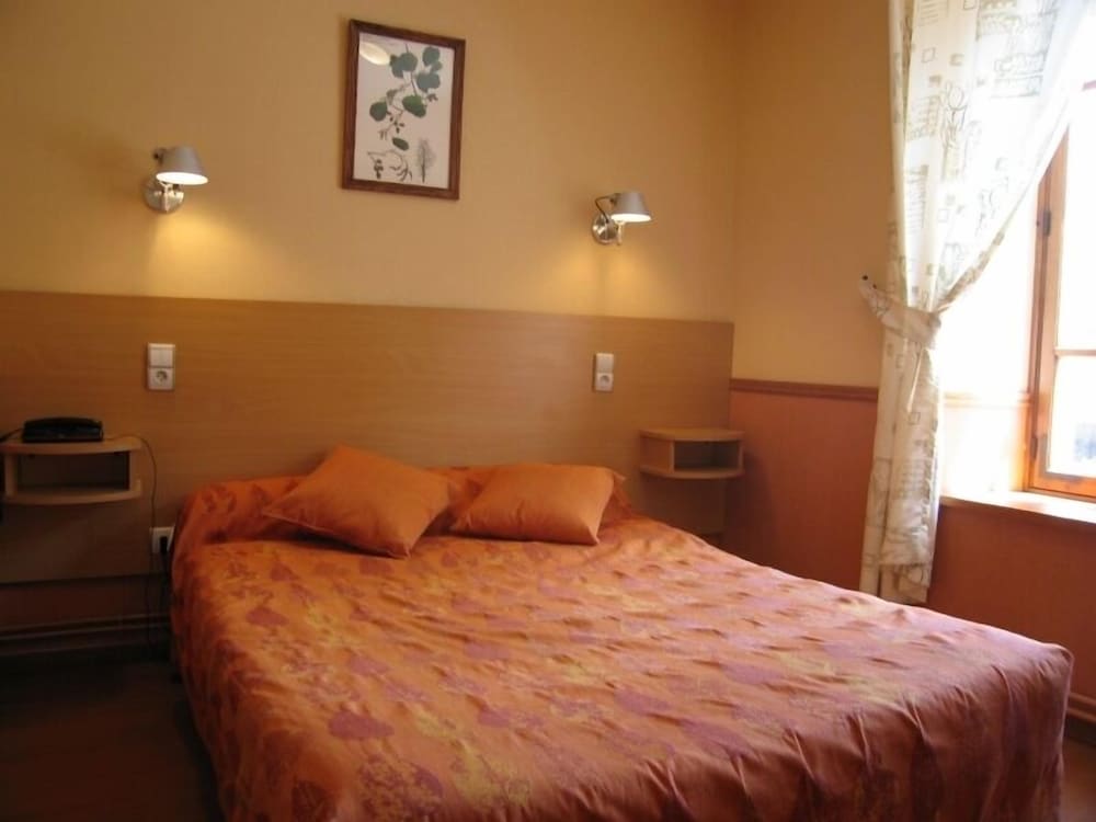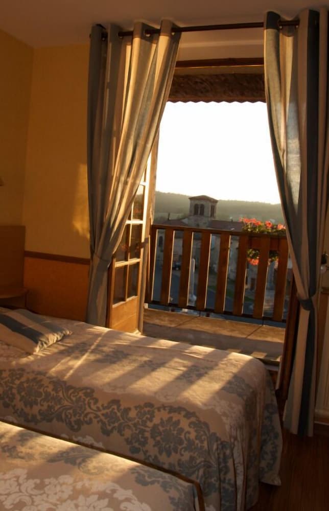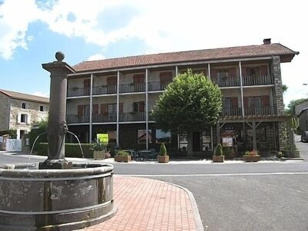 Enjoy the beautiful views from the terrace and garden at Hôtel la Clairière, located steps away from Parc Naturel Regional Livradois-Forez.