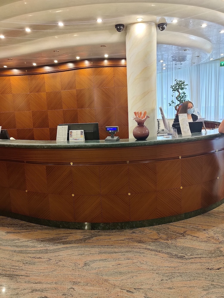 Första dagen tilldelades vi ett rum som överhuvudtaget inte motsvarade beskrivningen - otroligt litet, dåligt planerat och med en liten stenhård säng för två personer. Ingen balkong och det skulle ju ingå!!! Dag två fick vi byta till ett rum med balkong och en normalstor säng (för två). Rummet var lite bättre planerat än det första men jag har nog aldrig sett en så dålig planering av ett hotellrum. Väldigt svårt att kommunicera då hotellpersonalen enbart talade italienska och ryska. All personal var väldigt vänlig och städningen var mer än perfekt!