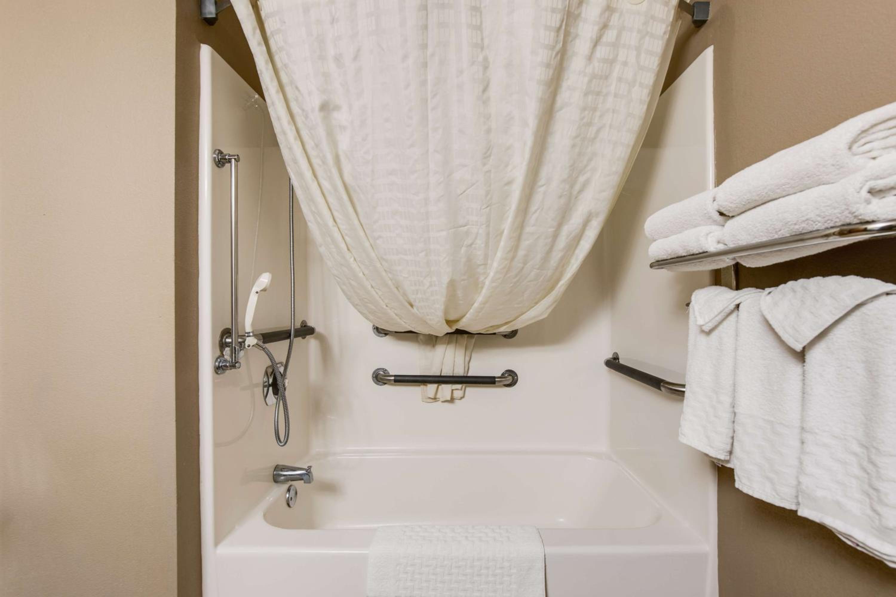 My husband took a shower first and told me to be very careful when getting out because the bottom of the tub was higher than the bathroom floor. There also was no hand rail or any indication of this. I would consider that a safety hazard.