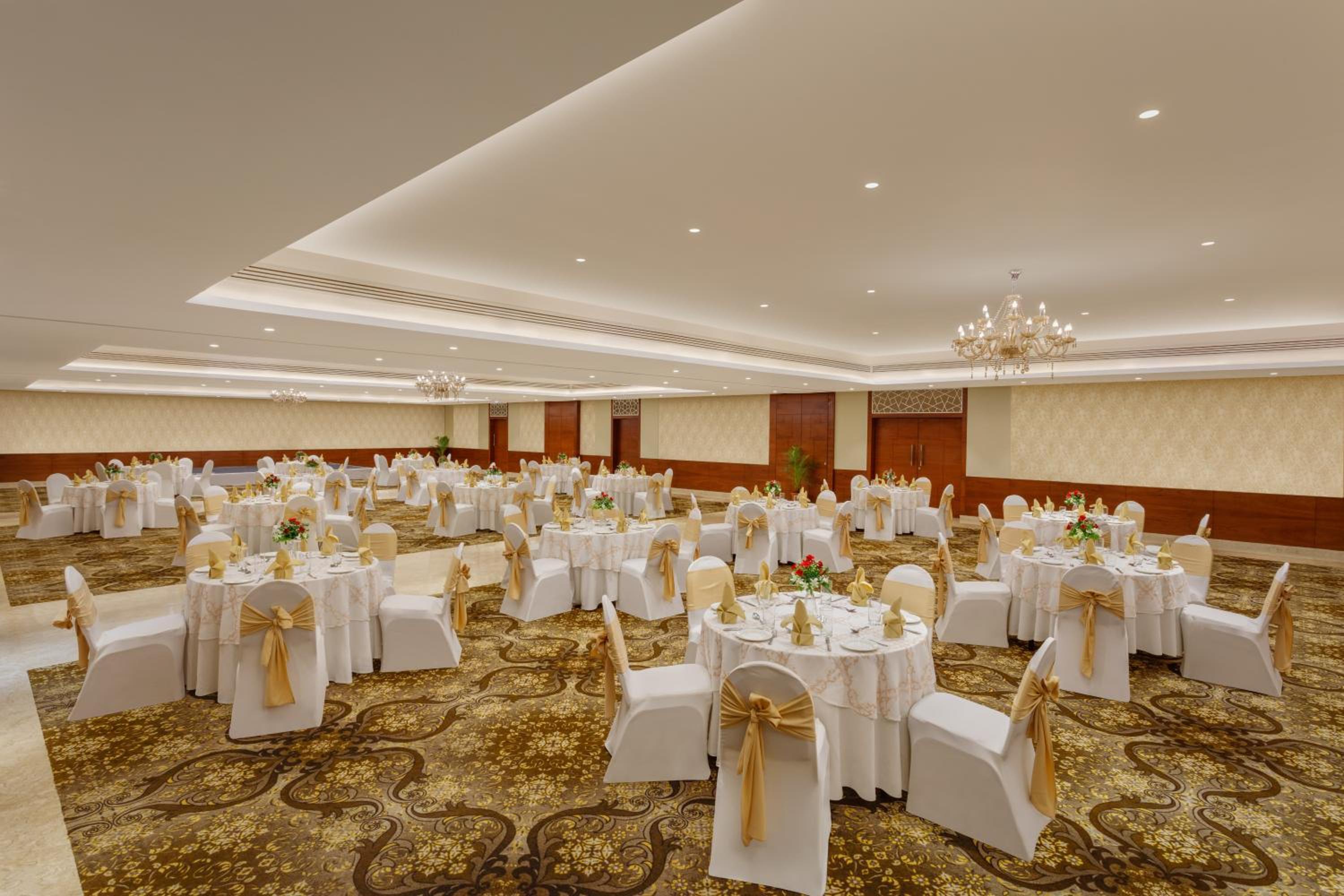 The banquet Venue- Sita Hall, a pillarless hall that can be transformed into three separate venues, offers a perfect setting for any event. Whether it's a grand celebration or an intimate gathering, our versatile spaces cater to your every need.