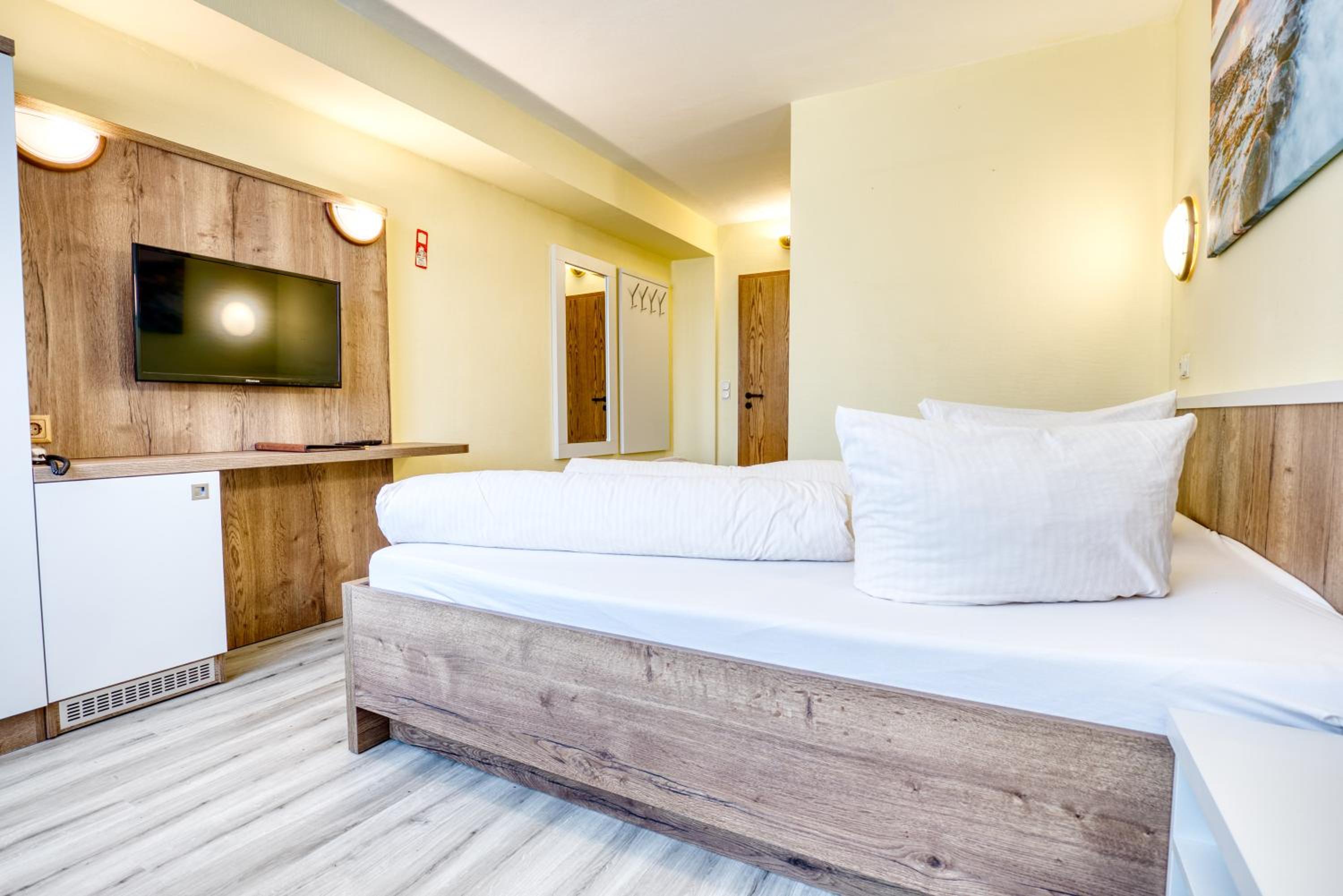 Zimmer eher klein und spartanisch. Insbesondere die schmalen Betten. Bad sehe klein, vor allem die Dusche