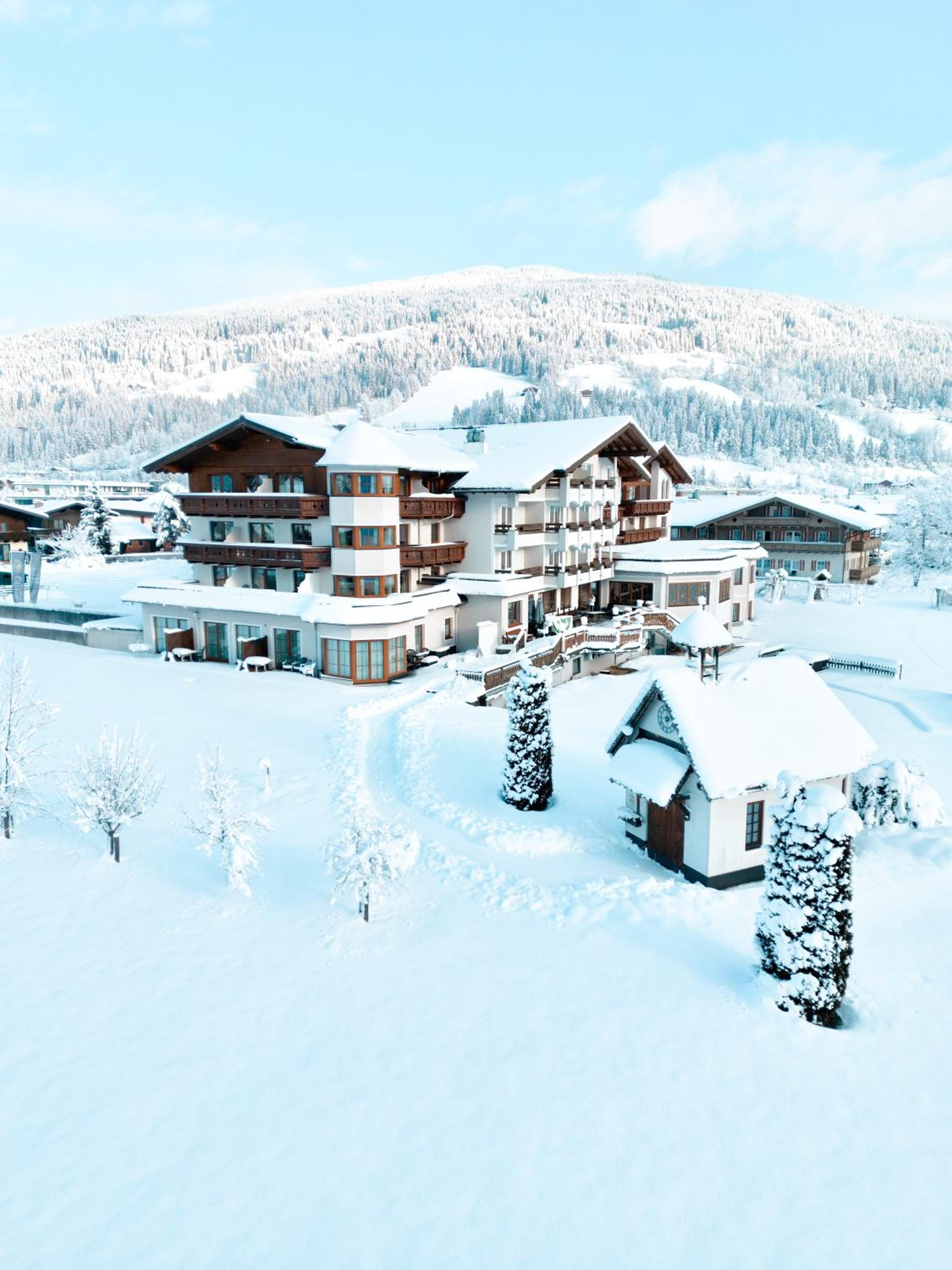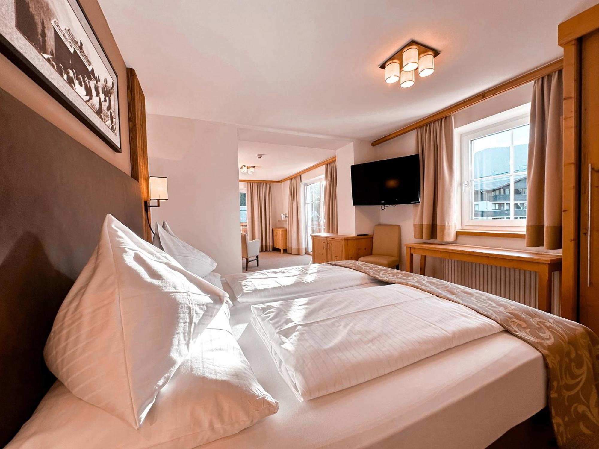 Sehr schönes Hotel in guter, ruhiger Lage. Skibus direkt vor dem Haus. Exzellentes Frühstück und ebenso gute Halbpension. Geschmackvoller Spa-Bereich.