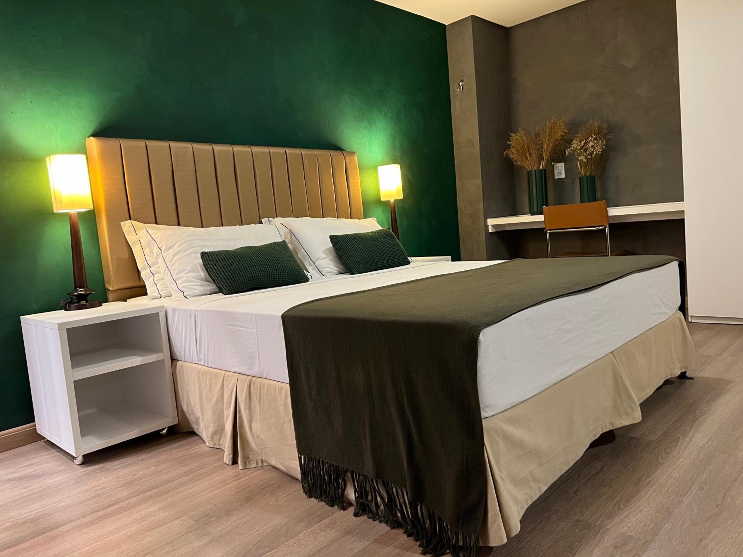 Quarto confortável, janela com isolamento acústico e black out que ajuda para uma boa noite de sono, café da manhã muito bom, estacionamento coberto.