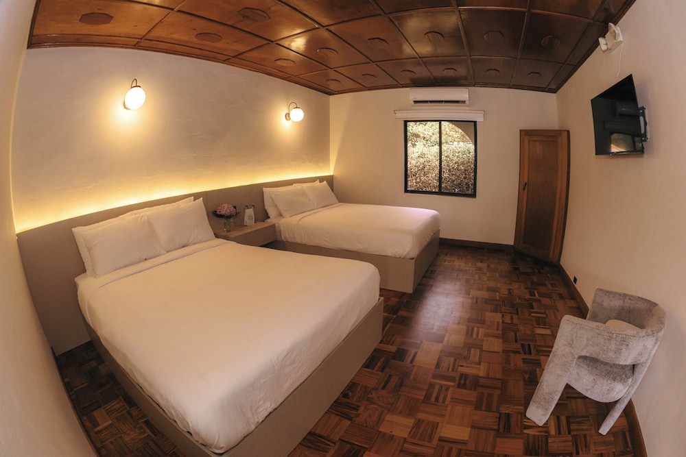 Excelente ubicación es la primera vez que caminamos boquete y nos encantó. Las instalaciones están muy acogedoras y limpias. En mis últimas visitas a hotel mi cama ha estado sucios con cabello ajeno. Aquí revisé y no había ni una sola pestaña. Tiene un área tipo comedor donde puede cenar tranquilamente y ver la TV. El patio interno es hermoso.
