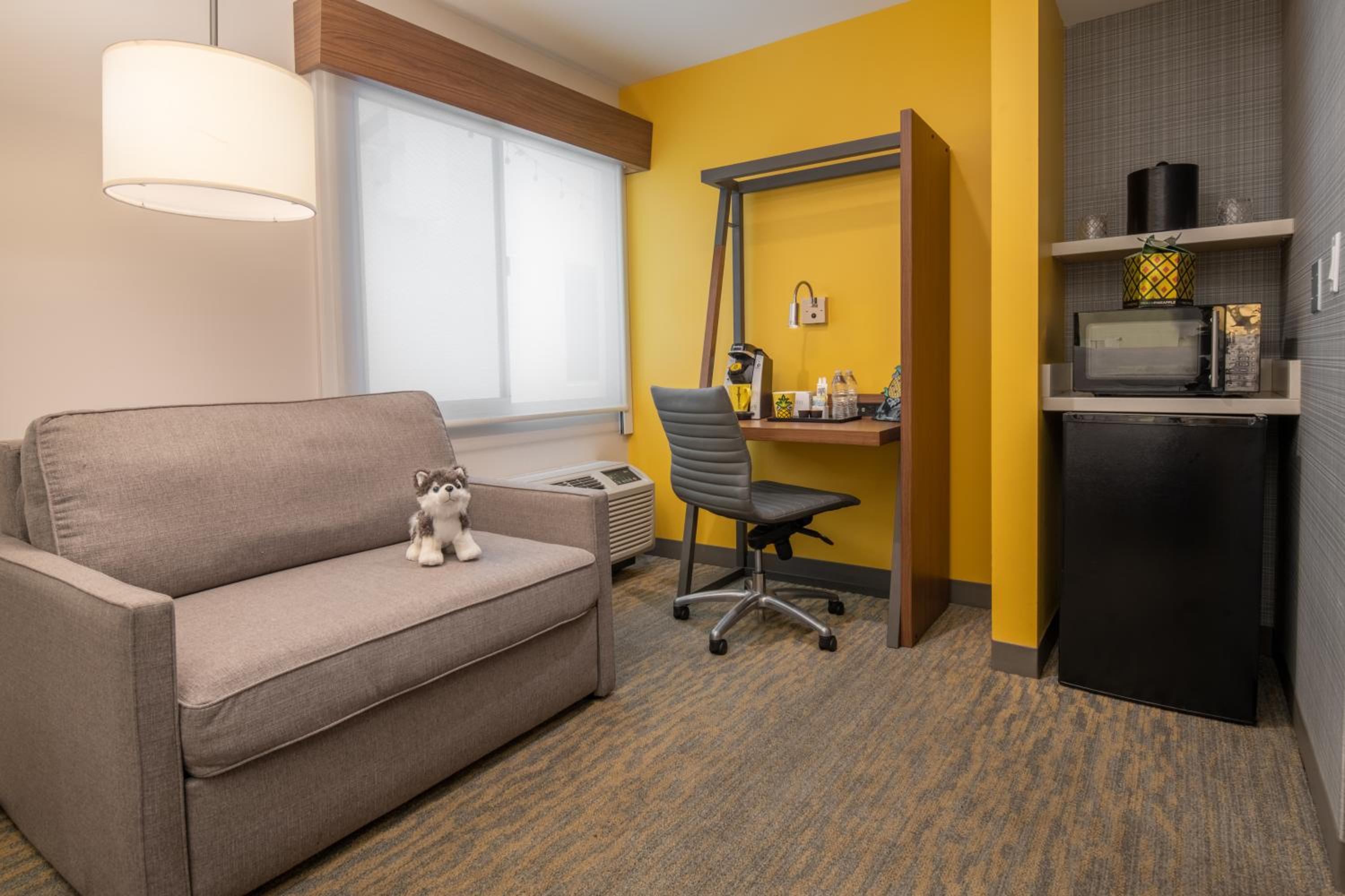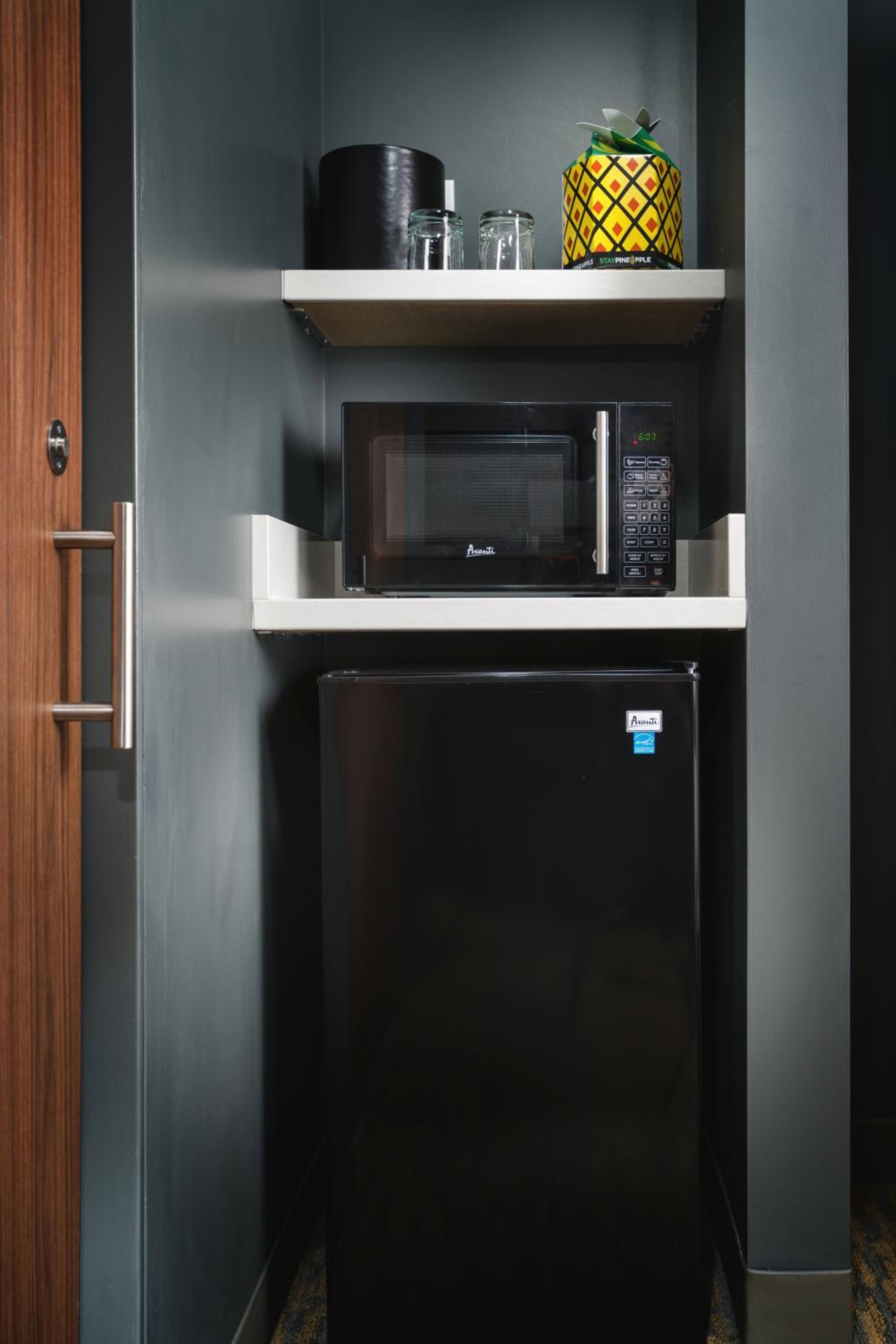 We enjoyed the hotel, but the added plus was the microwave and fridge. We were able to eat leftovers. The desk staff was friendly, and helpful directing to trolley, bus, etc.