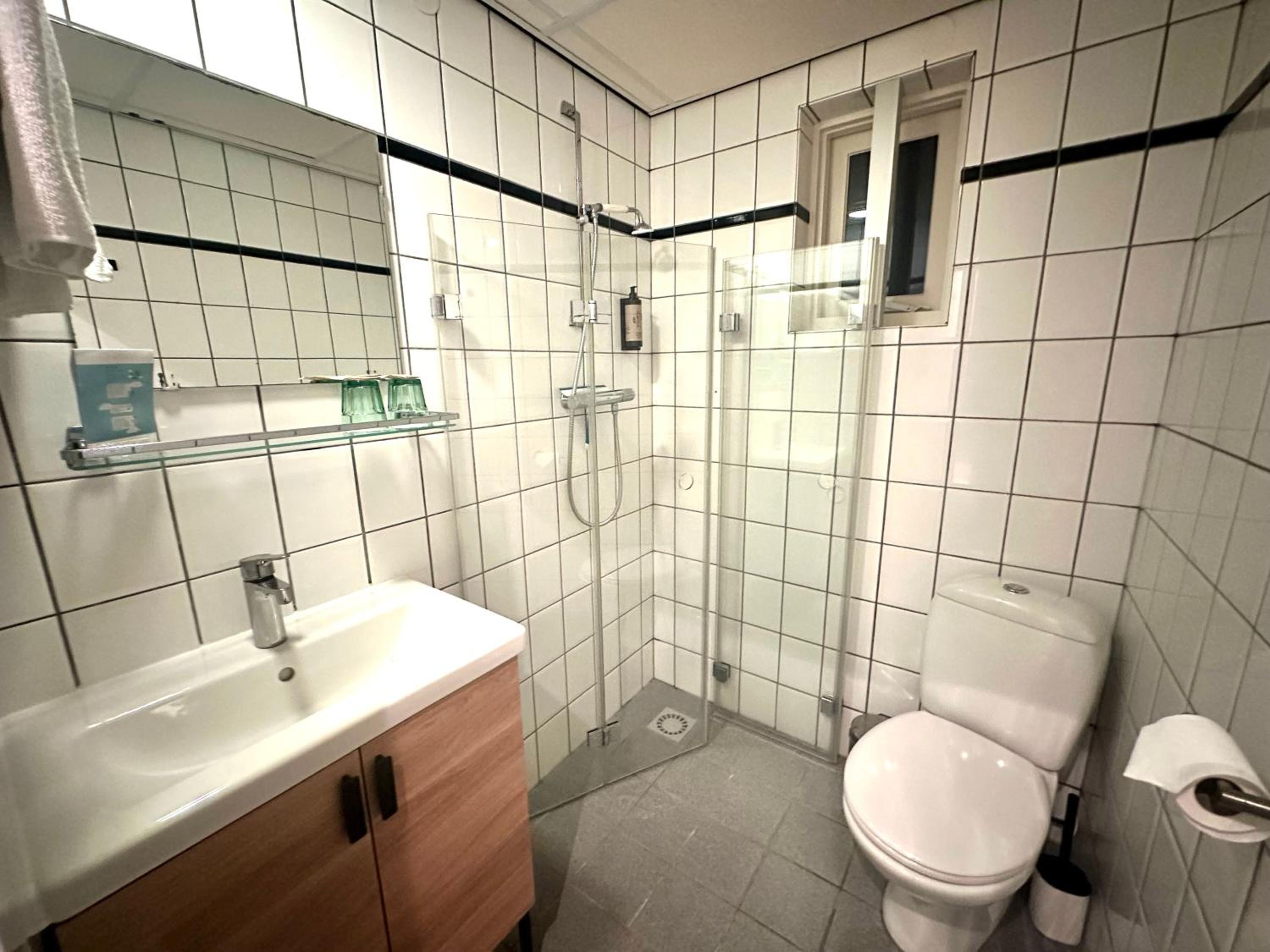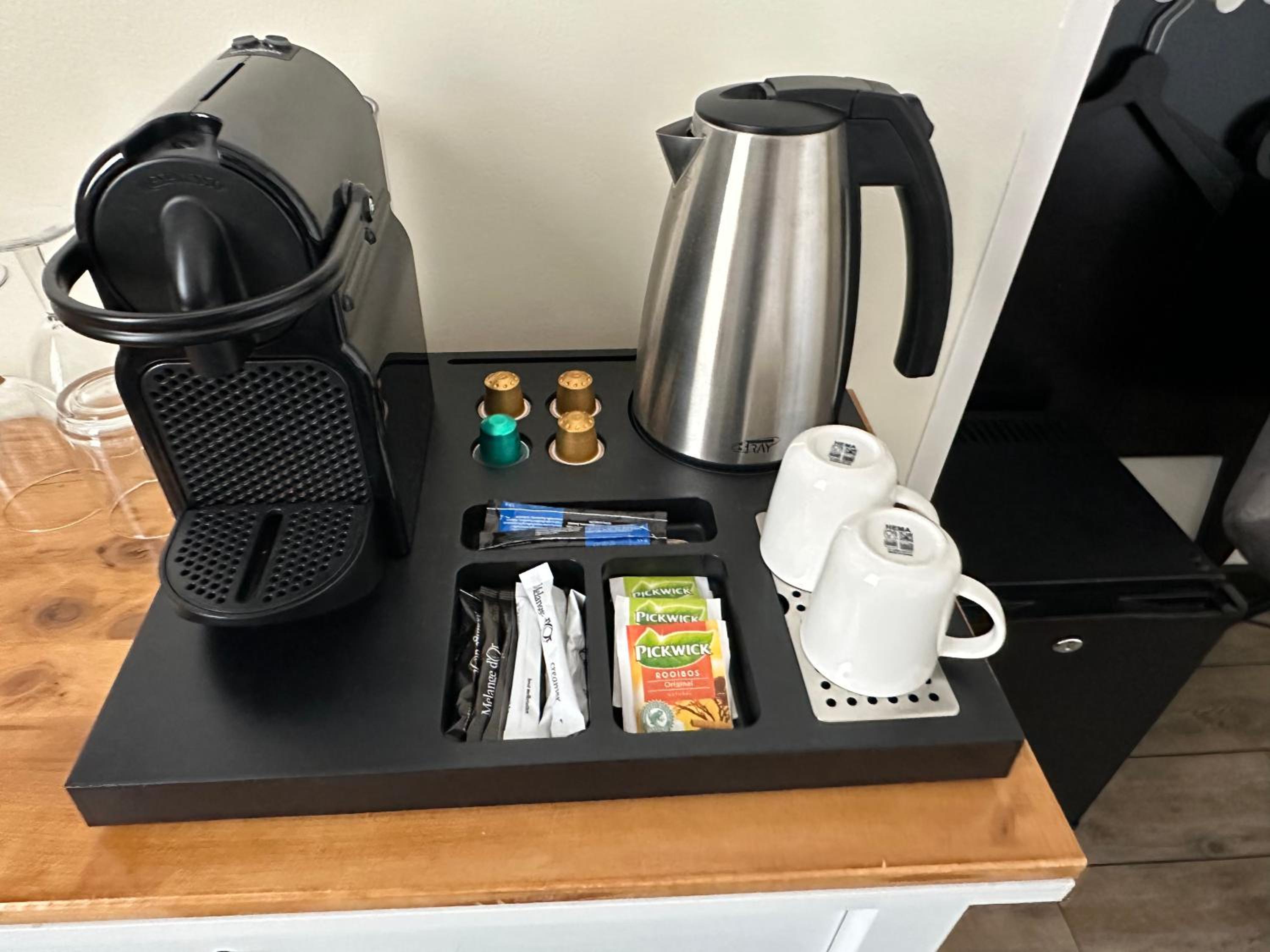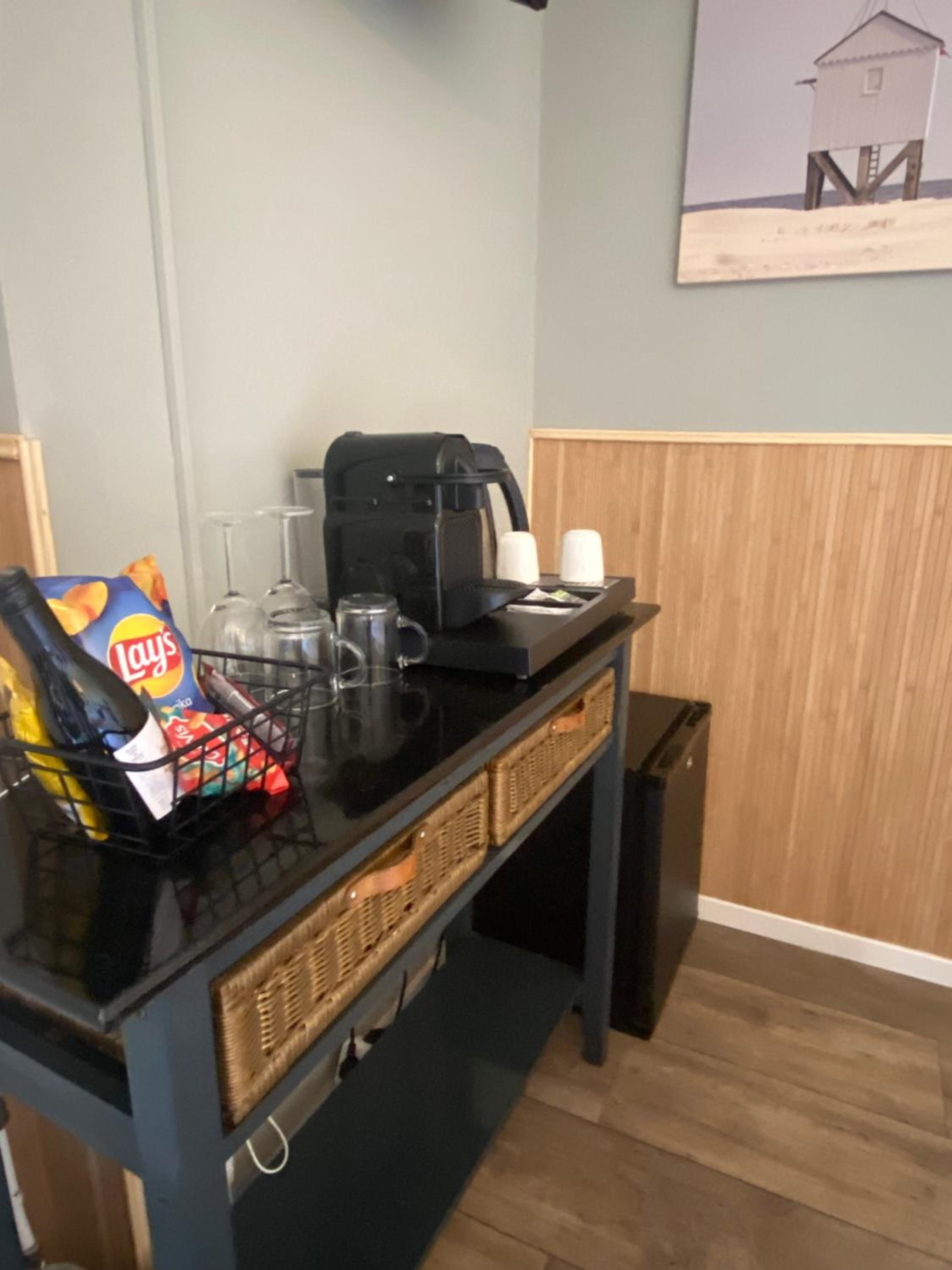 Er waren enkele ramen, waardoor het ´s nachts wat koud aanvoelde. Beetje tocht, ondanks dat je de verwarming hoger kon zetten. Er was een kast om kleding in te leggen, maar op twee haakjes na, geen mogelijkheid om kleding op te hangen, want ikzelf altijd prettiger vind. Ondanks alle faciliteiten hadden we eerder het gevoel in een luxe B&B te zijn, want de receptie was gesloten toen we arriveerden. Dat vind ik dan toch wat minder persoonlijk.