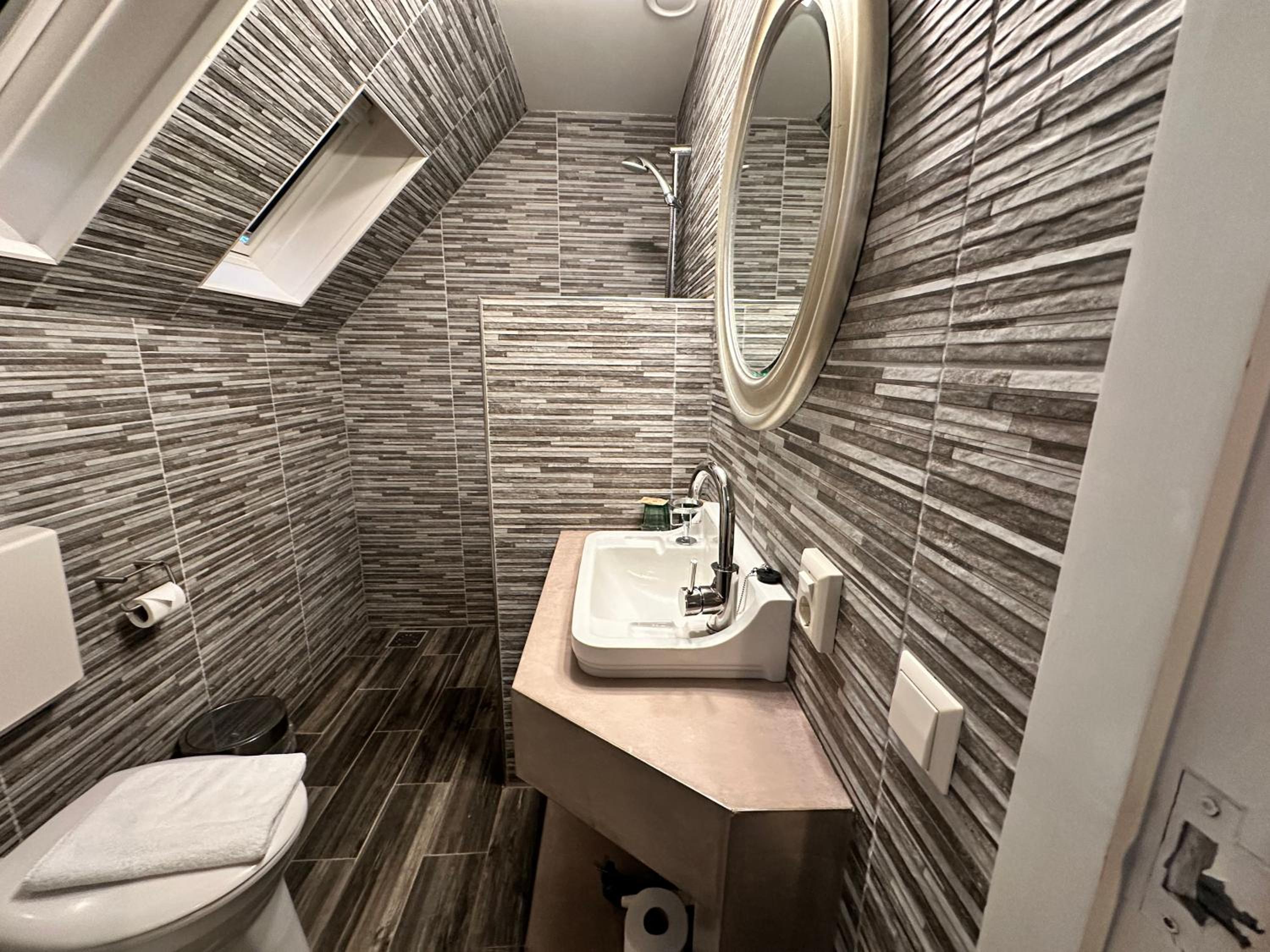 De douche was niet goed afgesteld waardoor ik er niet lekker onder kon staan en de hele badkamer nat werd