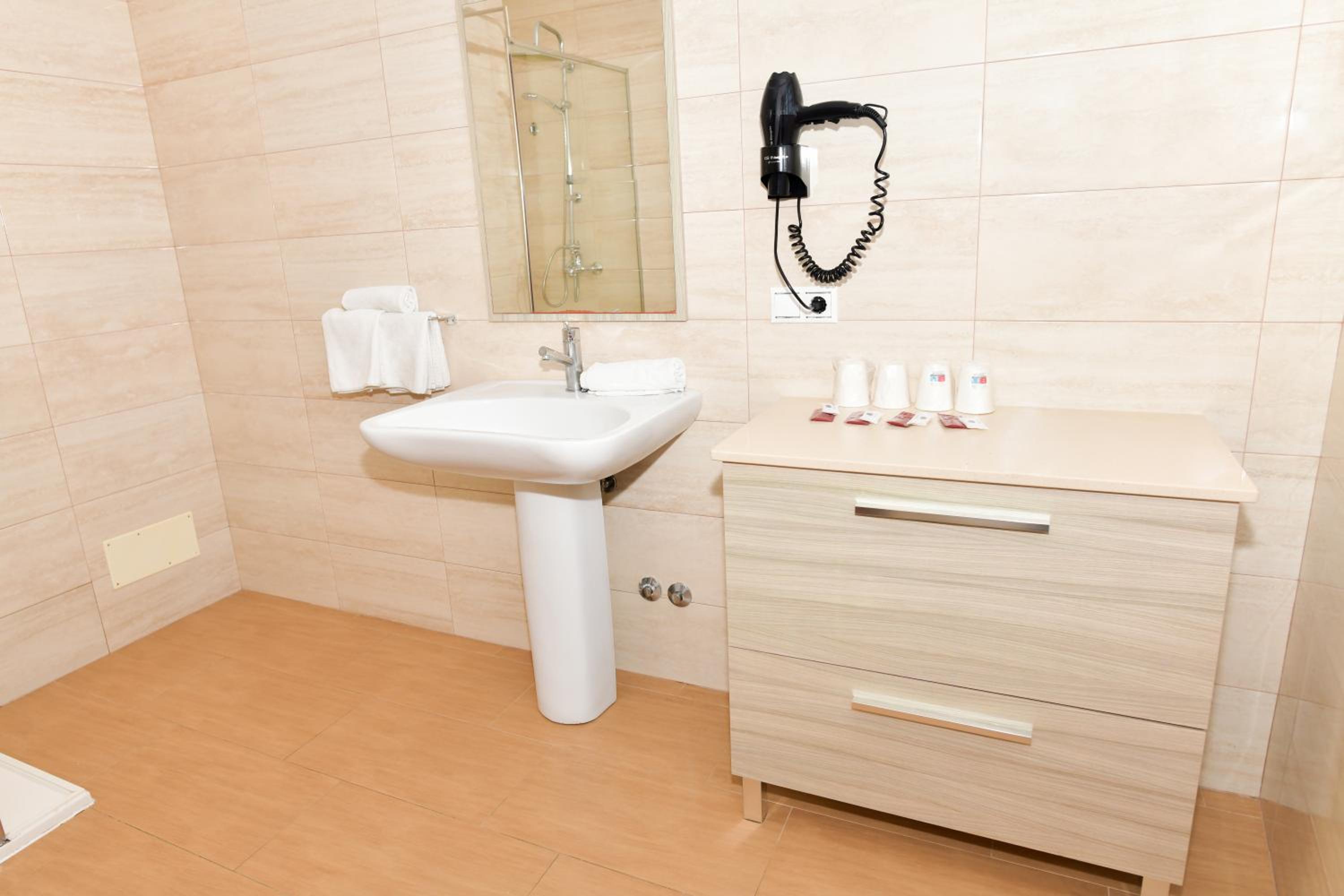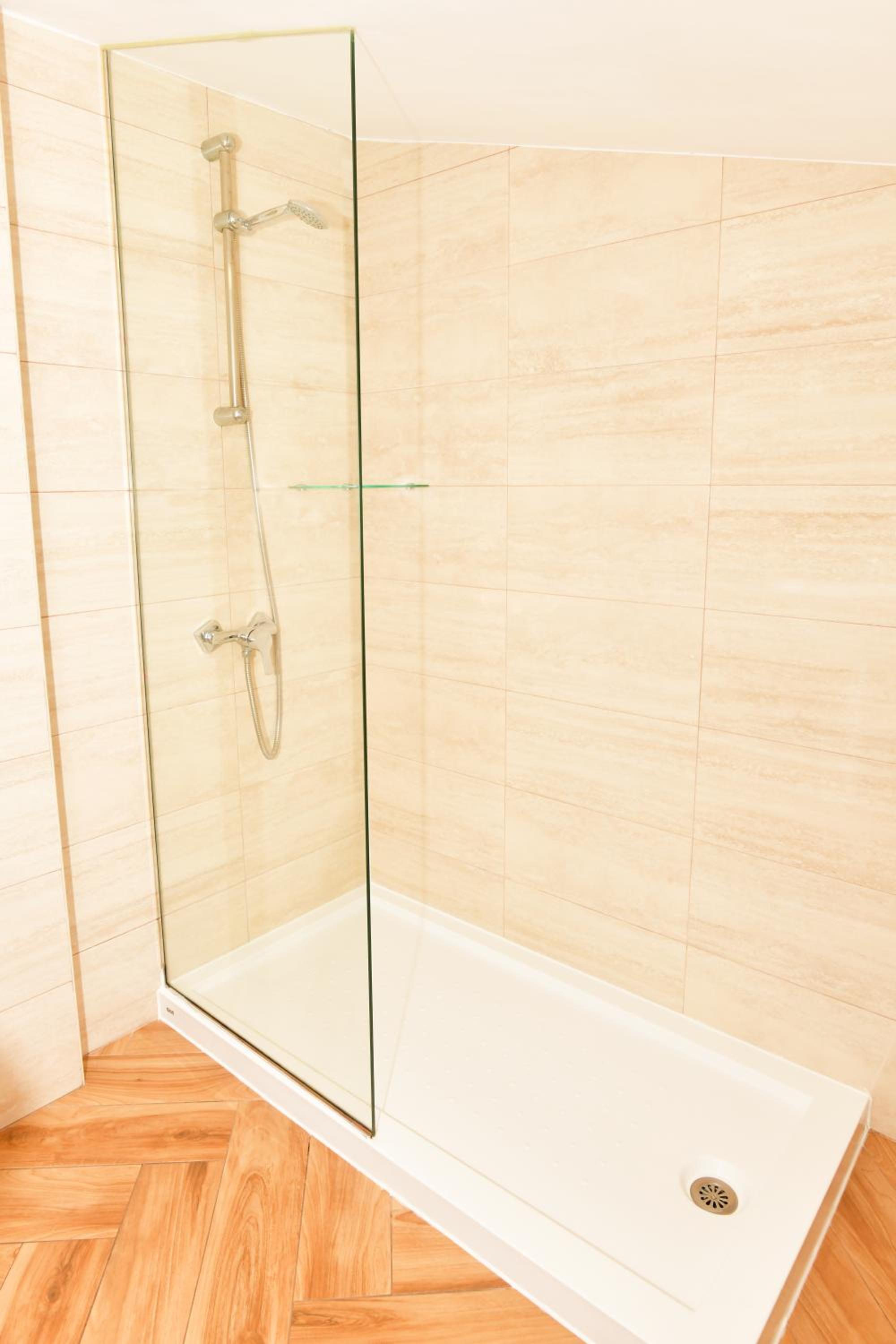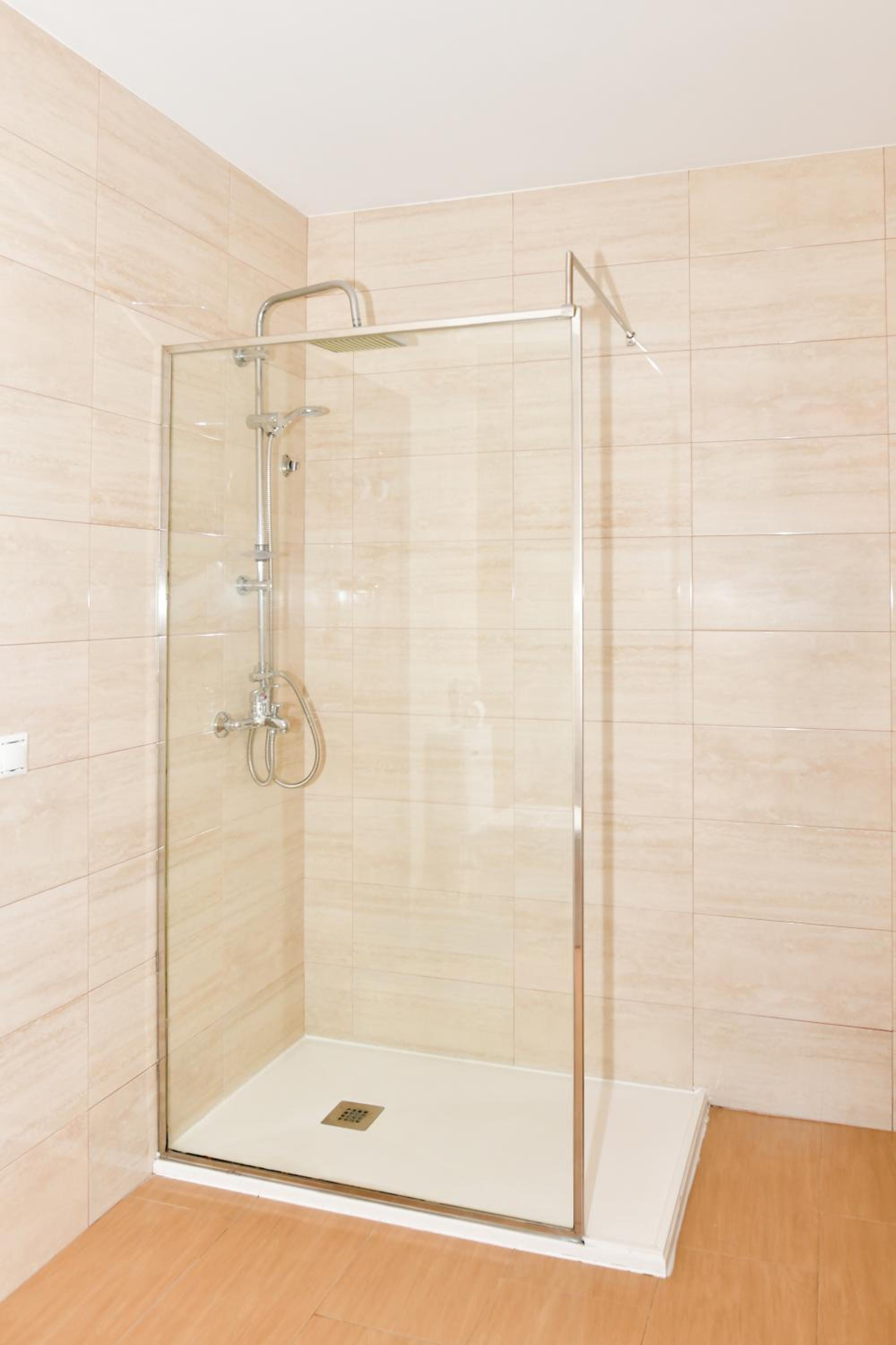 Quizás lo único es que el baño es tan amplio que hace falta una mesita o estante donde poder poner la ropa.
