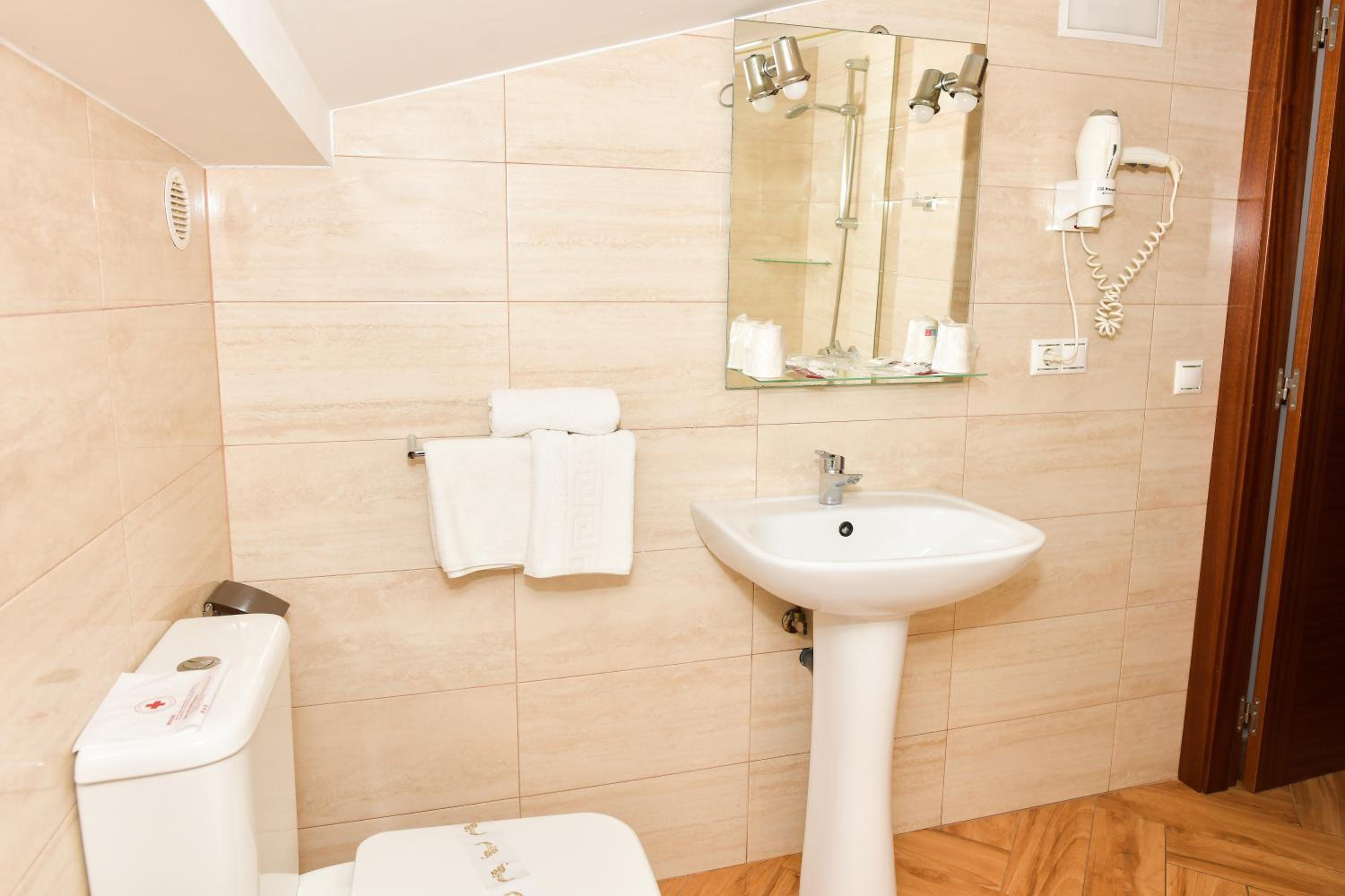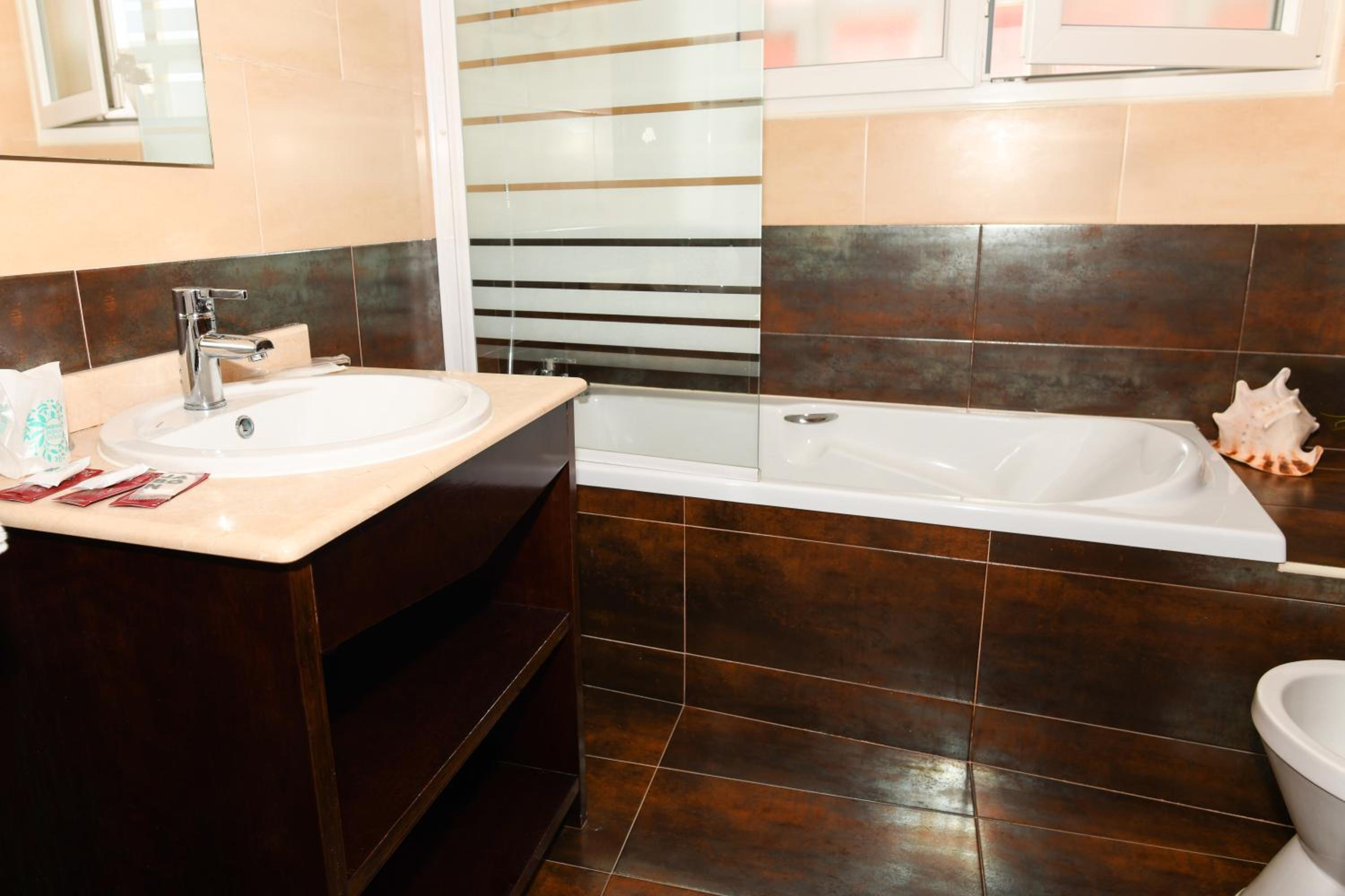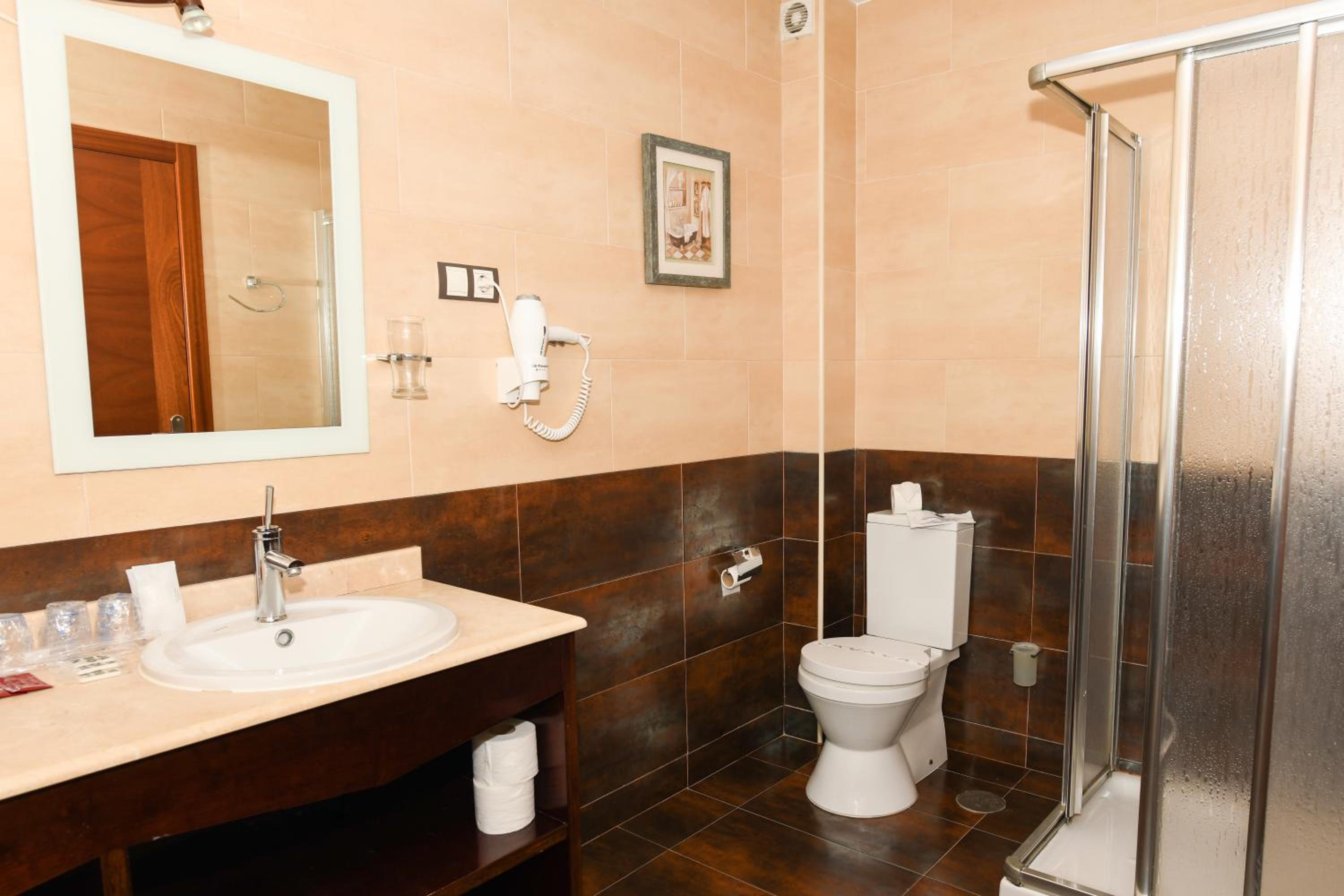 Quizás lo único es que el baño es tan amplio que hace falta una mesita o estante donde poder poner la ropa.