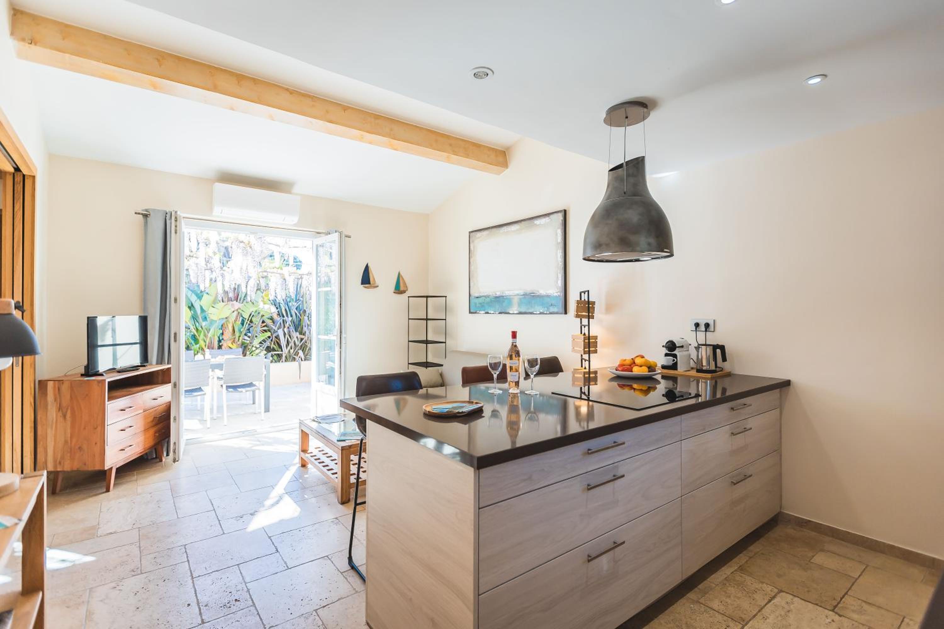 Les Maisons du Sud, nestled between the vibrant Saint-Tropez and the famous Pampelonne beaches, offers a range of stylish studios and spacious apartments for your comfort. Each unit boasts private terraces and well-equipped kitchenettes, ensuring a relaxing stay for up to 6 guests.