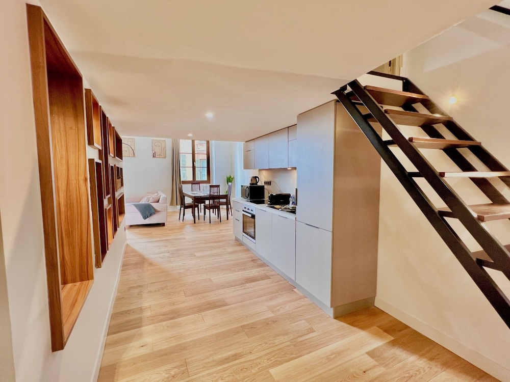 The apartment was roomy. One of the three rooms was down below and didn't have any windows and had a slight old smell but super private. First time walking in the stairway was a bit interesting and looked like a breezeway was built between two buildings, ie a lot of electrical wires hanging down. I would still stay here again because it was a great location.