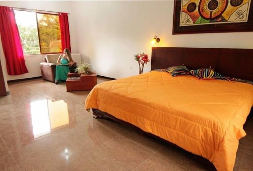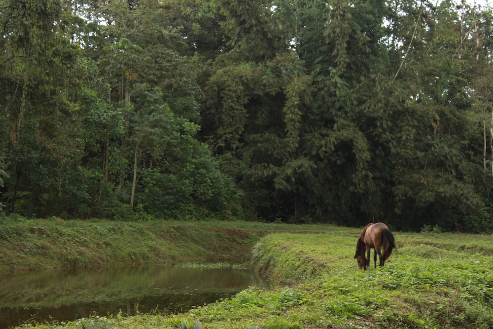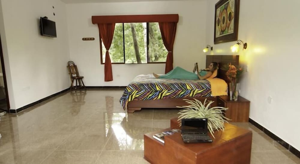 Loved this place, We checked in very late in the night, We were greeted with open arms. We were guided down this winding car path to the back of the property, assisted with our bags & taken to our room. Very Large room, Clean & colorful. Fresh towels, soap & shampoo. Hot water, A/C, Refrigerator & Satellite TV. So the next morning we were awakened by tropical birds chirping outside, Took a nice Hot Shower with good pressure in a very large stall. As we stepped outside we were amazed at how deep we were back in this Very Tropical property. We walked to the front of the property to find our included Breakfast at a very large open-air restaurant. We also at that time discovered that there is a Nice little Water Park included with the stay. We had a nice traditional Ecuadorian Breakfast with coffee & fresh squeezed tropical juice. We also found walking trails all through the property & along side a winding Creek/River.
