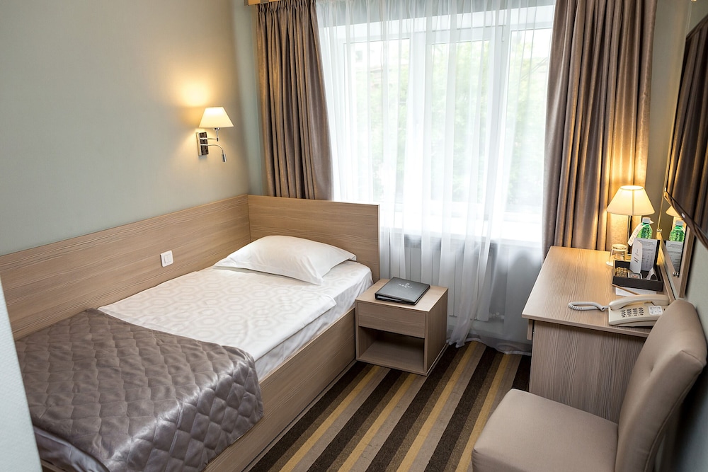 Loved the hotel! It's only 2 blocks from the Kirovka street, with all the restaurants and entertainment. A very convenient location, right in downtown of Chelyabinsk, everything is super close. We got free breakfast every morning, which was very nice and up to our standards. A plus: they do have free champagne so if you love mimosas like me, be sure to ask them J You'd have to tell them how to make it because apparently no one in Russia has ever heard about mimosas, but it's worth it! The room was spacious and clean, very comfy, the shower was spacious and very nice. Basically, everything you need for a very reasonable price. Oh, and the staff speaks English, which was a huge plus for us!