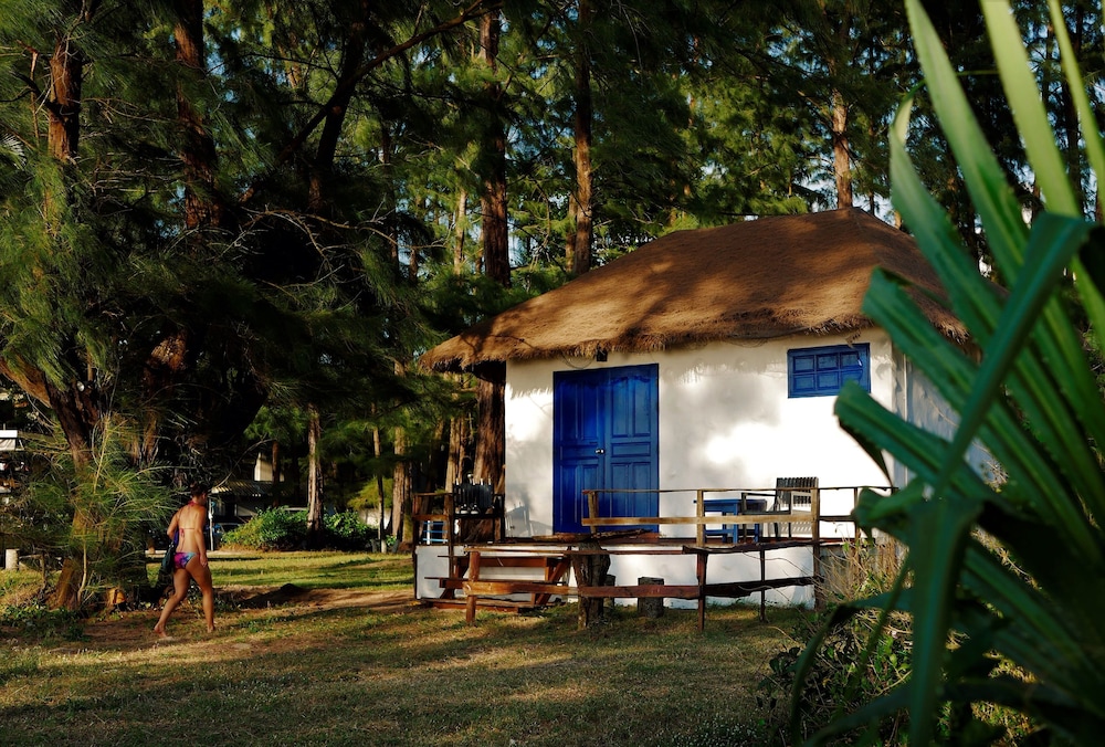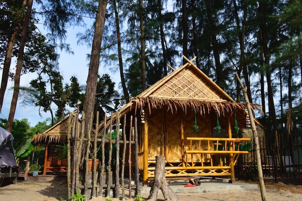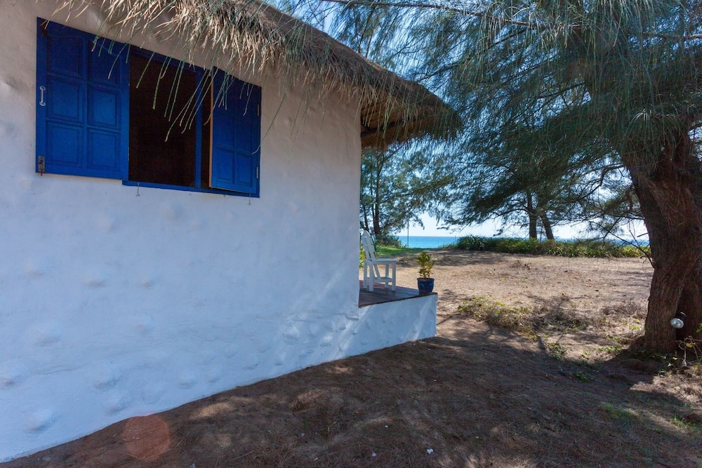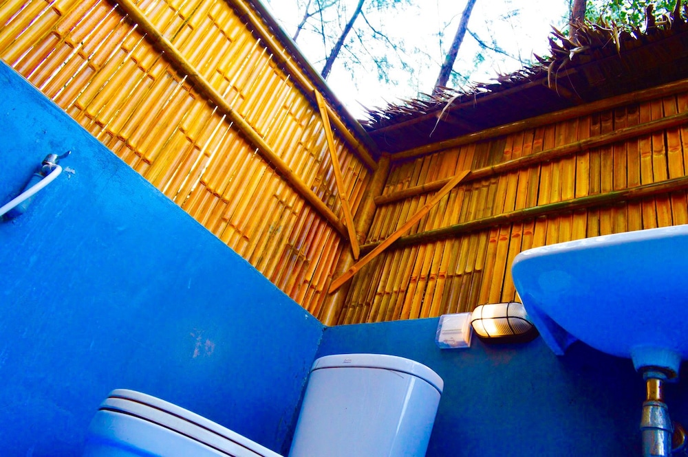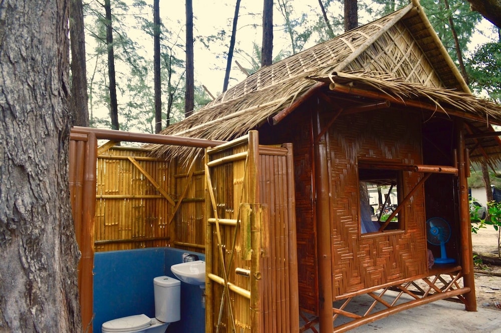 Nice little property on the beach between the extremely expensive hotels. The little primitive wooden bungalows have a mattress mosquito net and a coat hanger inside. That’s what you’re paying for the toilet and the shower are outside but are part of your rental. I didn’t mind it. Location pays for everything as you step outside. You’re on the beach. The beach was empty, but I’ve never got to enjoy it because of the windy rainy days. I would definitely go back. If you want five star pay the $500 a night next door.