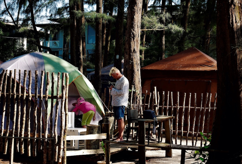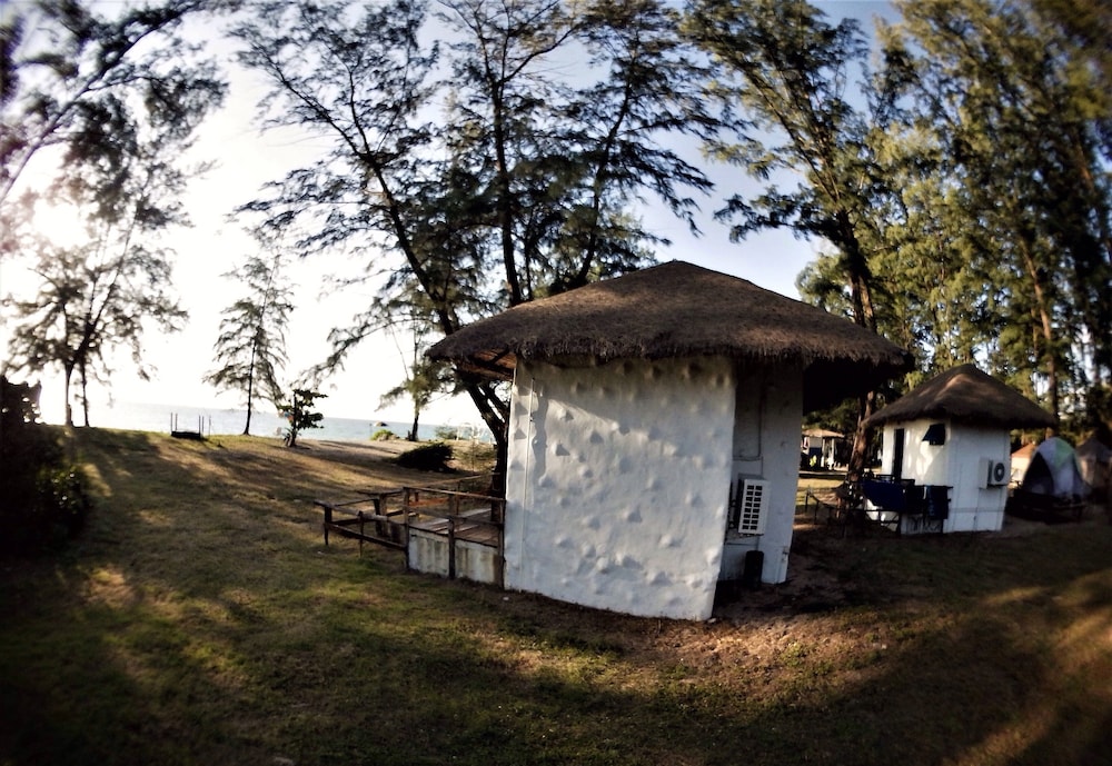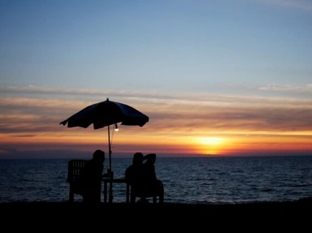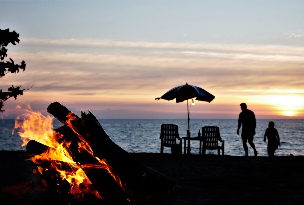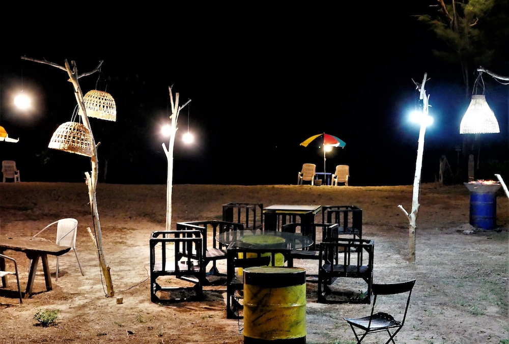 Nice little property on the beach between the extremely expensive hotels. The little primitive wooden bungalows have a mattress mosquito net and a coat hanger inside. That’s what you’re paying for the toilet and the shower are outside but are part of your rental. I didn’t mind it. Location pays for everything as you step outside. You’re on the beach. The beach was empty, but I’ve never got to enjoy it because of the windy rainy days. I would definitely go back. If you want five star pay the $500 a night next door.