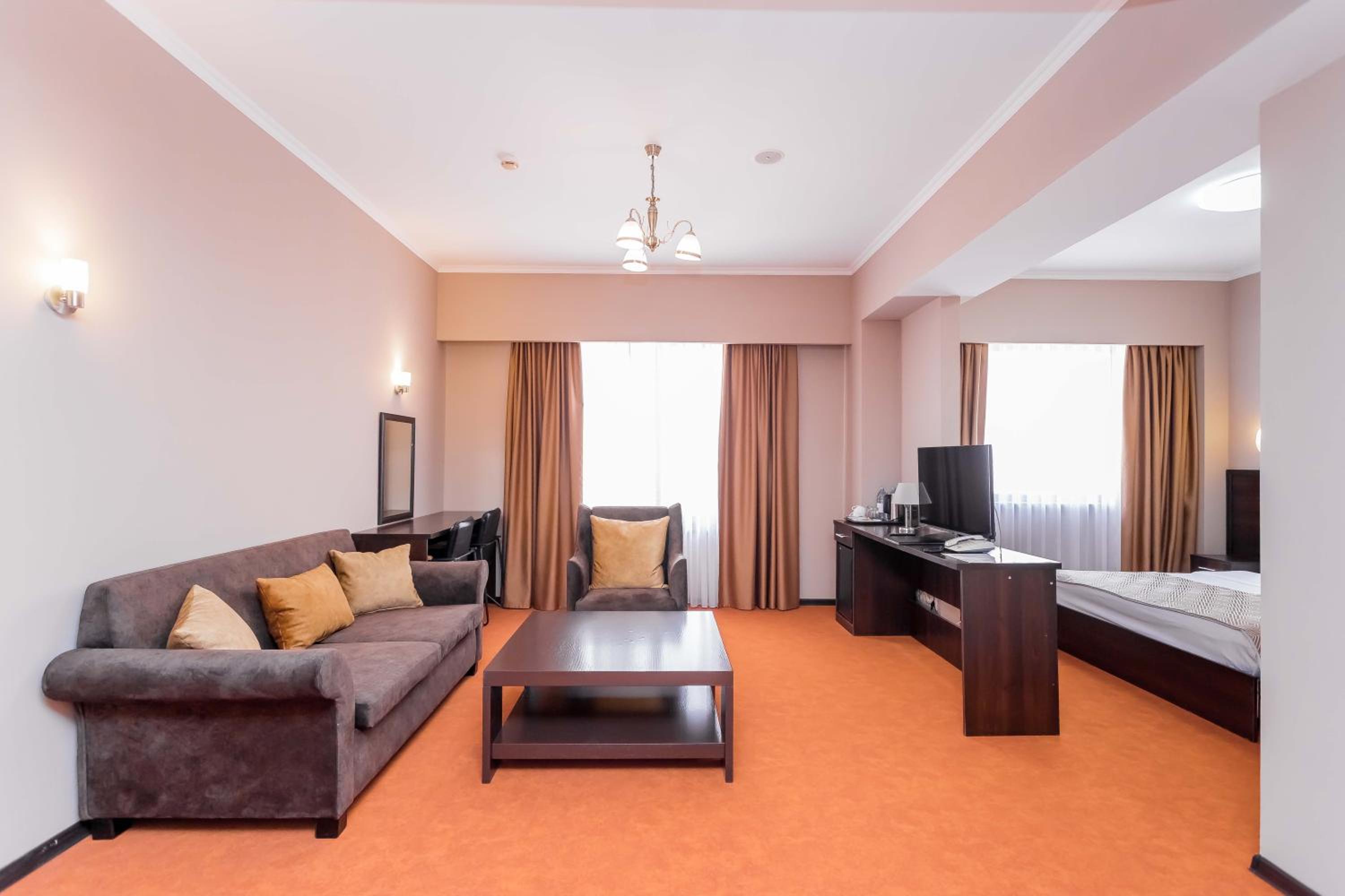 Enjoy a delightful culinary experience at our on-site restaurant offering Kazakh and European cuisine. Need to explore the city? A bus stop nearby provides easy access to all districts, and Almaty International Airport is just 24 km away.