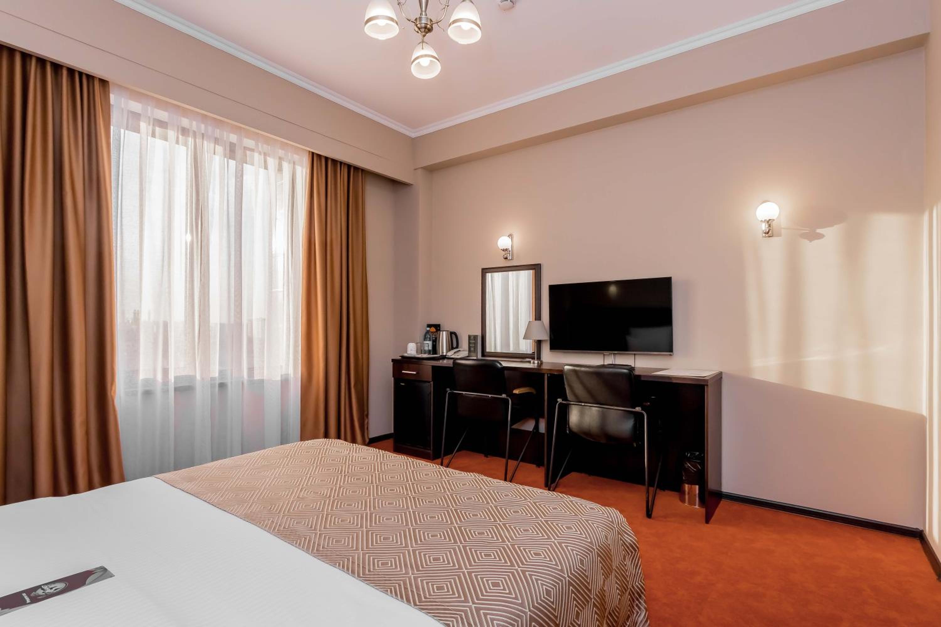 The bright, air-conditioned rooms at our hotel feature warm-colored interiors and modern décor. Each room is equipped with a TV, minibar, and a private bathroom with luxurious bathrobes and slippers for your comfort.